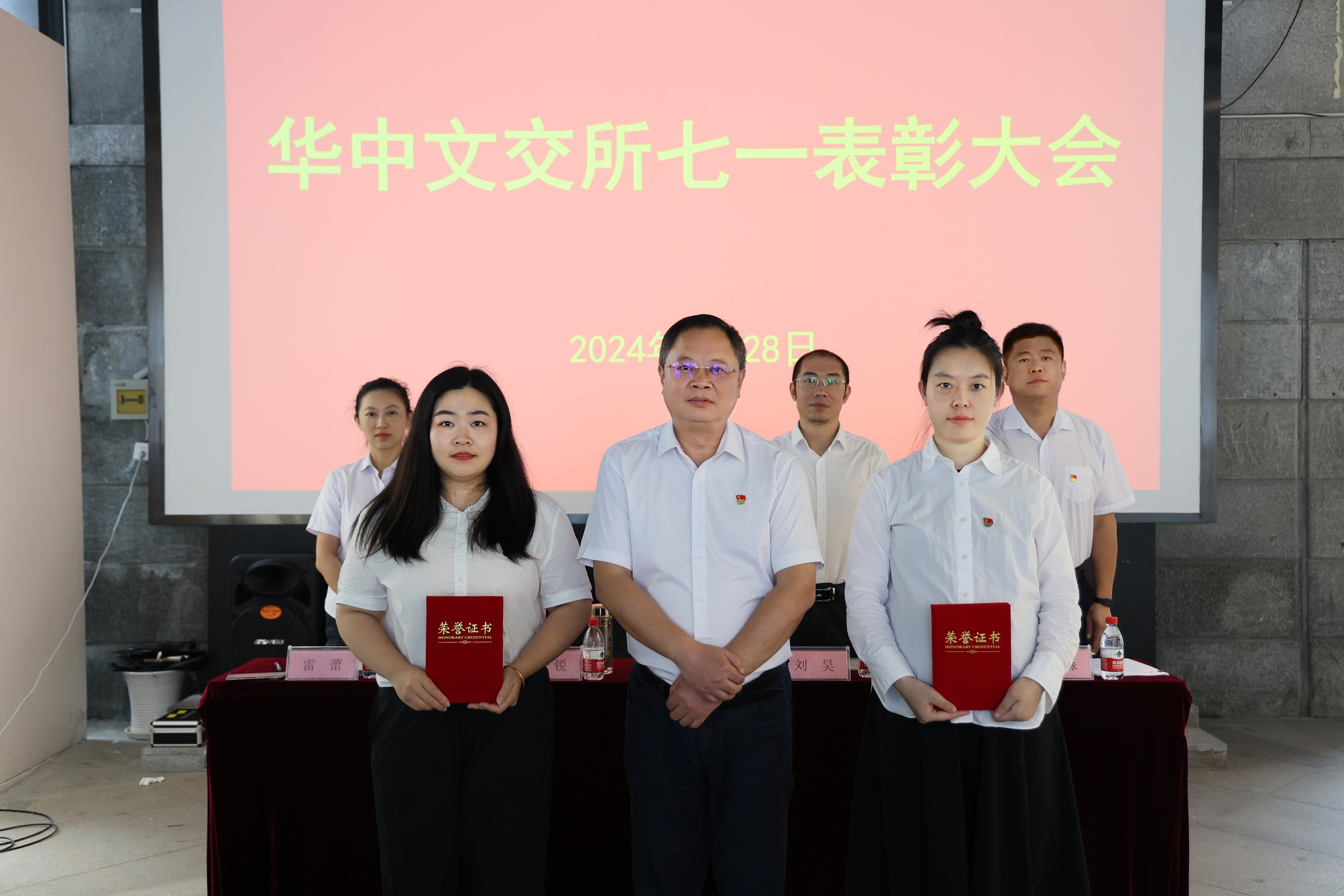 大会在雄壮的《国歌》声中拉开帷幕。会议宣读了《关于成立华中文交所党员志愿服务队的通知》和《2024年“七一”先进表彰的决定》,对华中文交所党员志愿服务队进行了授牌,授予张漪然等4名同志“优秀共产党员”荣誉称号,授予叶浩林等2名同志“优秀党务工作者”荣誉称号。同时,3个党员责任区分别结合自身职责,对一年来的成果进行了发布,他们坚持以重难点问题攻坚为着力点,切实补短板、攻弱项、强基础、提质效、解难题,不断夯实公司健康稳定发展的根基,持续推动各项攻坚任务圆满完成。