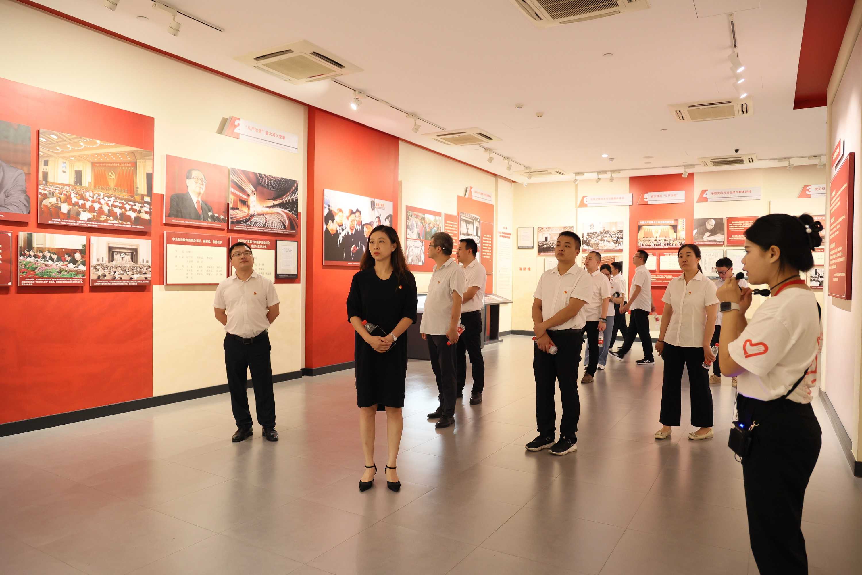 全体党员干部在陈列馆一楼的党旗前,重温入党誓词,以铿锵有力的宣誓声,表达不忘初心、牢记使命的信念和决心。在讲解员的带领下,全体党员干部依次参观了“创立与探索”“推进与曲折”“恢复与发展”“新时代新征程”四个主题展览。405件文物资料、700余幅珍贵历史照片、栩栩如生的模型,生动详实的展现了我们党自成立以来纪律建设、党风廉政建设以及监督执纪历程,让全体党员干部直观感受到党的纪律建设永远在路上的决心与意志。