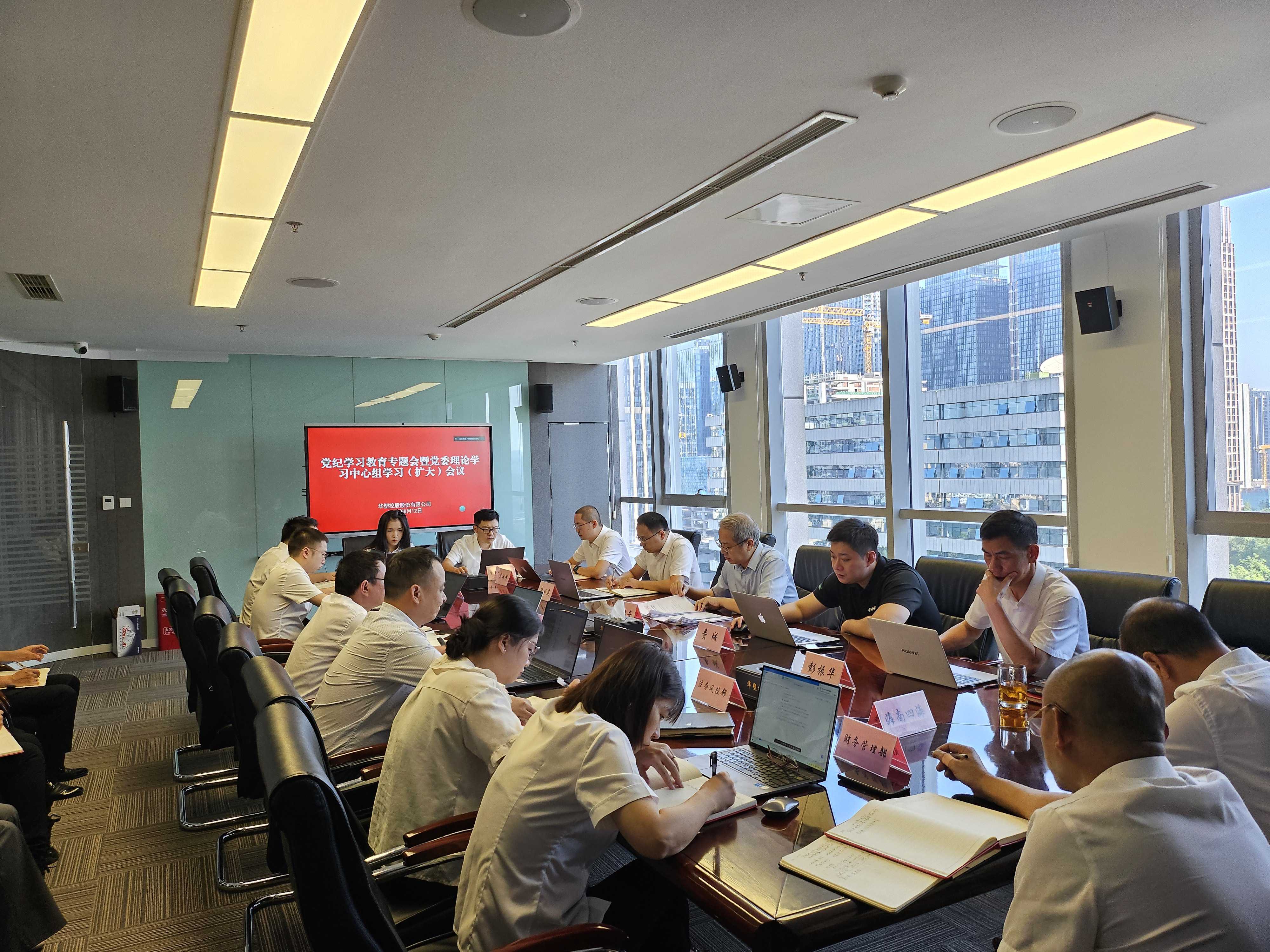 8月12日,华塑控股召开党纪学习教育专题会暨党委理论学习中心组学习(扩大)会议,公司本部全体干部员工、天玑智谷公司班子成员及全体党员参加。