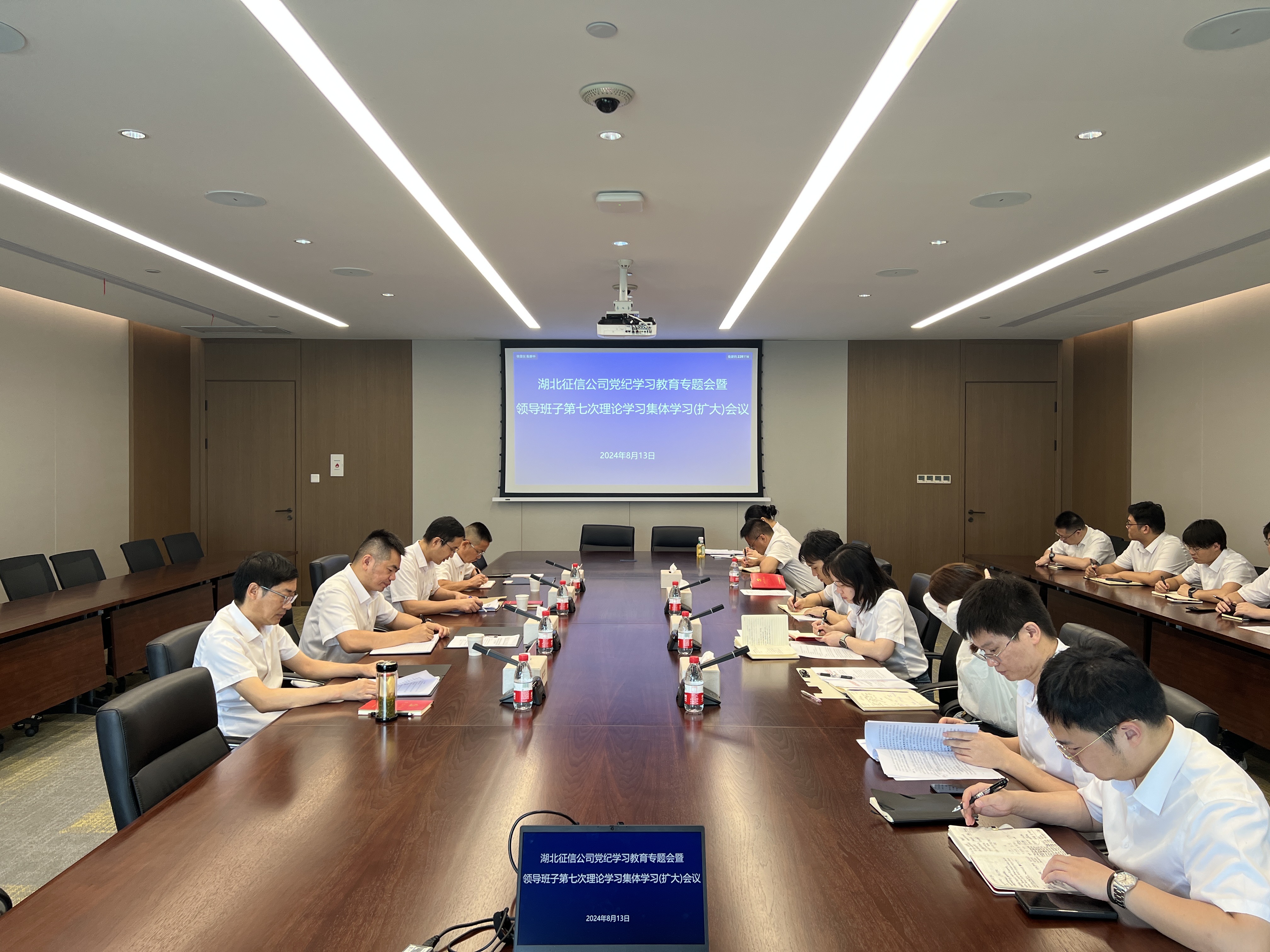 8月13日上午,湖北征信召开党纪学习教育专题会暨公司领导班子理论学习第7次集体学习(扩大)会议,认真学习习近平总书记关于善始善终抓好党纪学习教育重要讲话精神,进一步落实省委党纪学习教育工作专班和集团党委相关要求,再次学习了集团党委书记、董事长曾鑫同志在集团半年经营工作会上的讲话精神,扎实推进违纪风险点排查、工作作风集中整治等工作,3名党员结合党纪学习教育,围绕“学党纪、明规矩、强党性”做研讨发言。党支部书记、董事长赵海建主持会议并讲话。