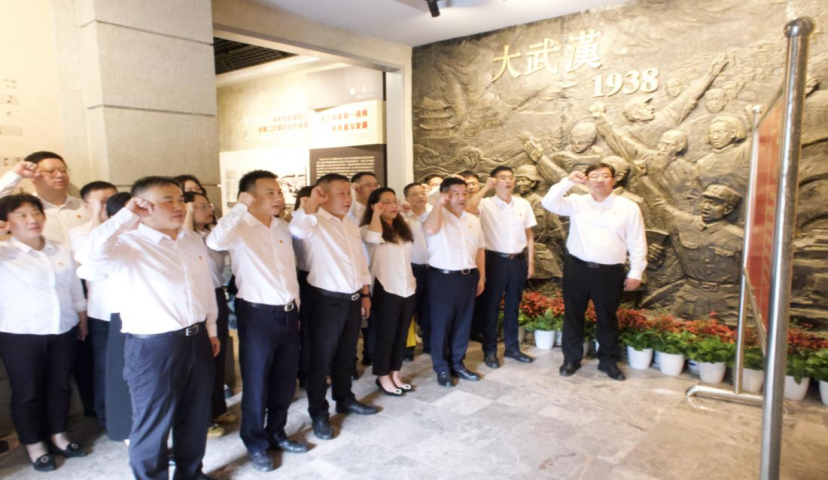 在领誓人的带领下举起右臂共同宣誓,全体党员重温入党誓词,用铮铮誓言诠释入党初心。在讲解员的引导下,大家参观了《大武汉1938》主题展览,大家认真观看了中国共产党在武汉积极进行抗战时的各类图片影视资料、实物和文档等,回顾了1938年武汉地区轰轰烈烈的抗日救亡运动和悲壮惨烈的武汉保卫战。随后,在八路军武汉办事处旧址纪念馆烈士遗照前默哀一分钟,表达对英雄们的敬意和怀念。参观结束后,集中学习了《习近平关于加强党的作风建设论述摘编》,围绕贯彻落实中央八项规定精神以及如何在工作生活中传承党的优良作风和革命精神开展交流研讨。