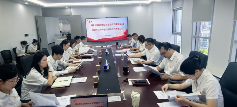2025年8月21日,宏泰基金公司召开了2025年政治生态分析研判工作专题会议。会议旨在深入贯彻落实全面从严治党要求,进一步推动公司政治生态的持续优化,为公司高质量发展提供坚实的政治保障。公司总经理孙子强、其他领导班子成员、全体党员及各部门负责人参加了会议,支部书记、董事长王宜军主持会议并讲话。
