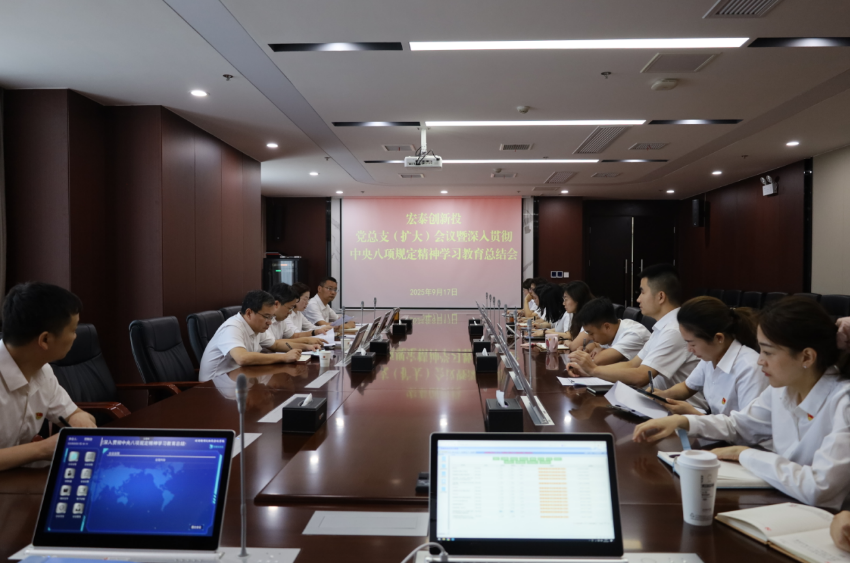 9月17日上午,宏泰创新投召开党总支(扩大)会议暨深入贯彻中央八项规定精神学习教育总结会,公司党总支书记、董事长邓志坚主持会议并讲话,公司党总支委员、各部门负责人、全体党员参会。