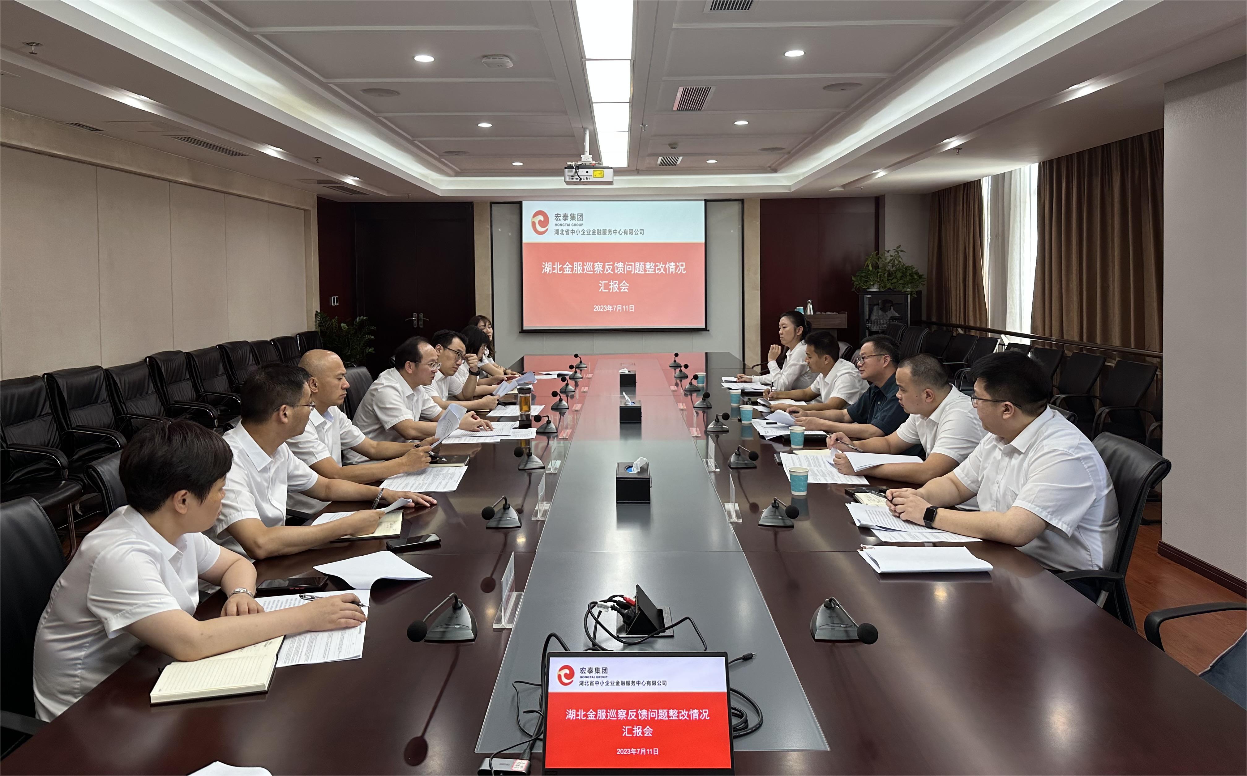 7月11日,湖北省中小企业金融服务中心有限公司(以下简称“湖北金服”)党委召开巡察反馈问题整改情况汇报会。湖北金服党委书记、董事长、总经理龚平主持会议,并代表公司党委向集团党委巡察整改督查组报告反馈问题整改情况。