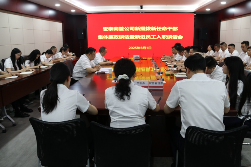 8月1日下午,宏泰商管公司召开新提拔新任命干部集体廉政暨新进员工入职谈话会。会上,参会人员集中观看了廉政警示教育片《无处遁形》,4名干部职工代表作了表态发言,公司纪委书记鲁杰同志对参会人员进行了集体廉洁谈话,公司党总支书记刘建兵同志作总结讲话并提出具体要求。