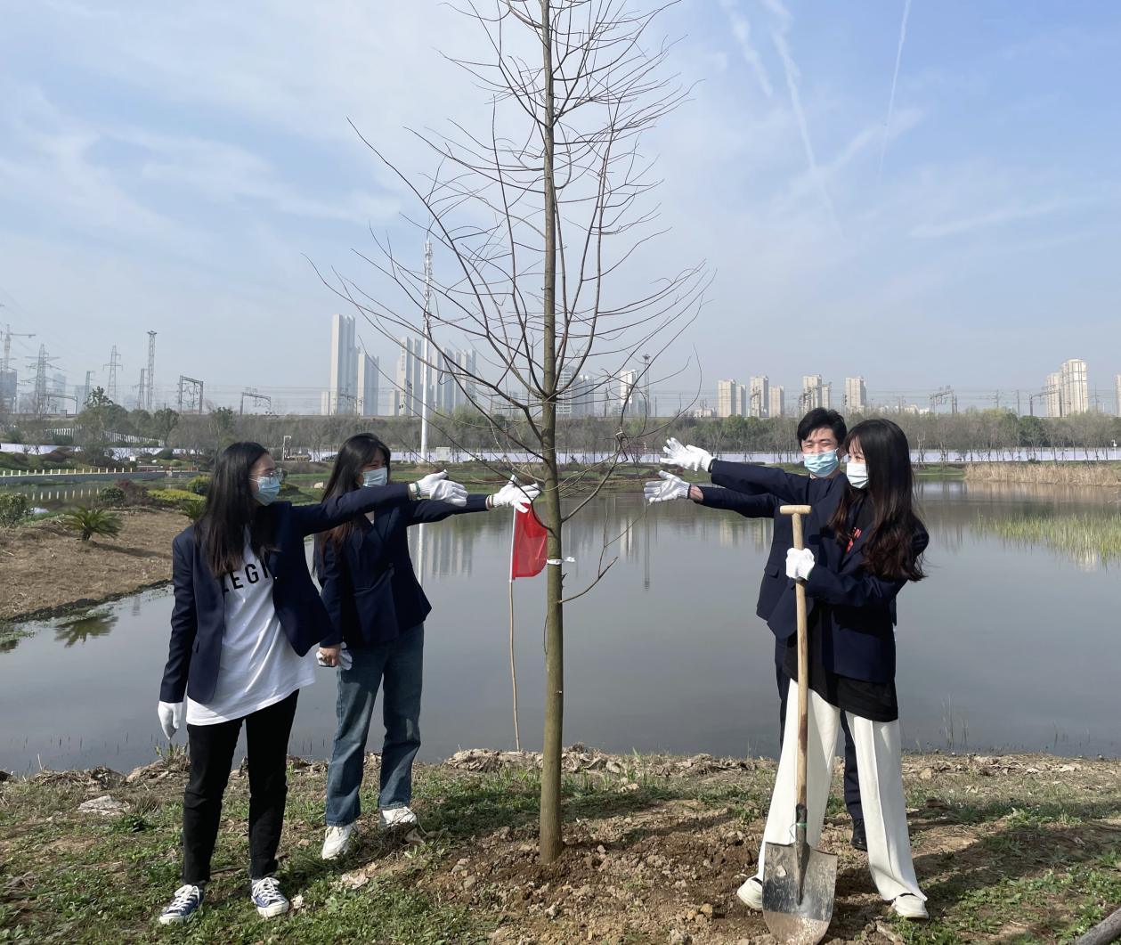 3月10日上午,宏泰商管5名团员代表到达杨春湖公园参加义务植树活动。植树现场团员们热情高涨,兴致勃勃地投入到植树活动中,挥锹铲土、填入树苗、扶直树苗、培实新土,大家分工协作,配合默契,将一颗颗充满生机和希望的树苗植入杨春湖畔。经过大家辛勤的劳动,新栽种的树木迎风挺立,在3月的阳光中迸发出绿色的希望,团员们圆满完成了这次植树任务。