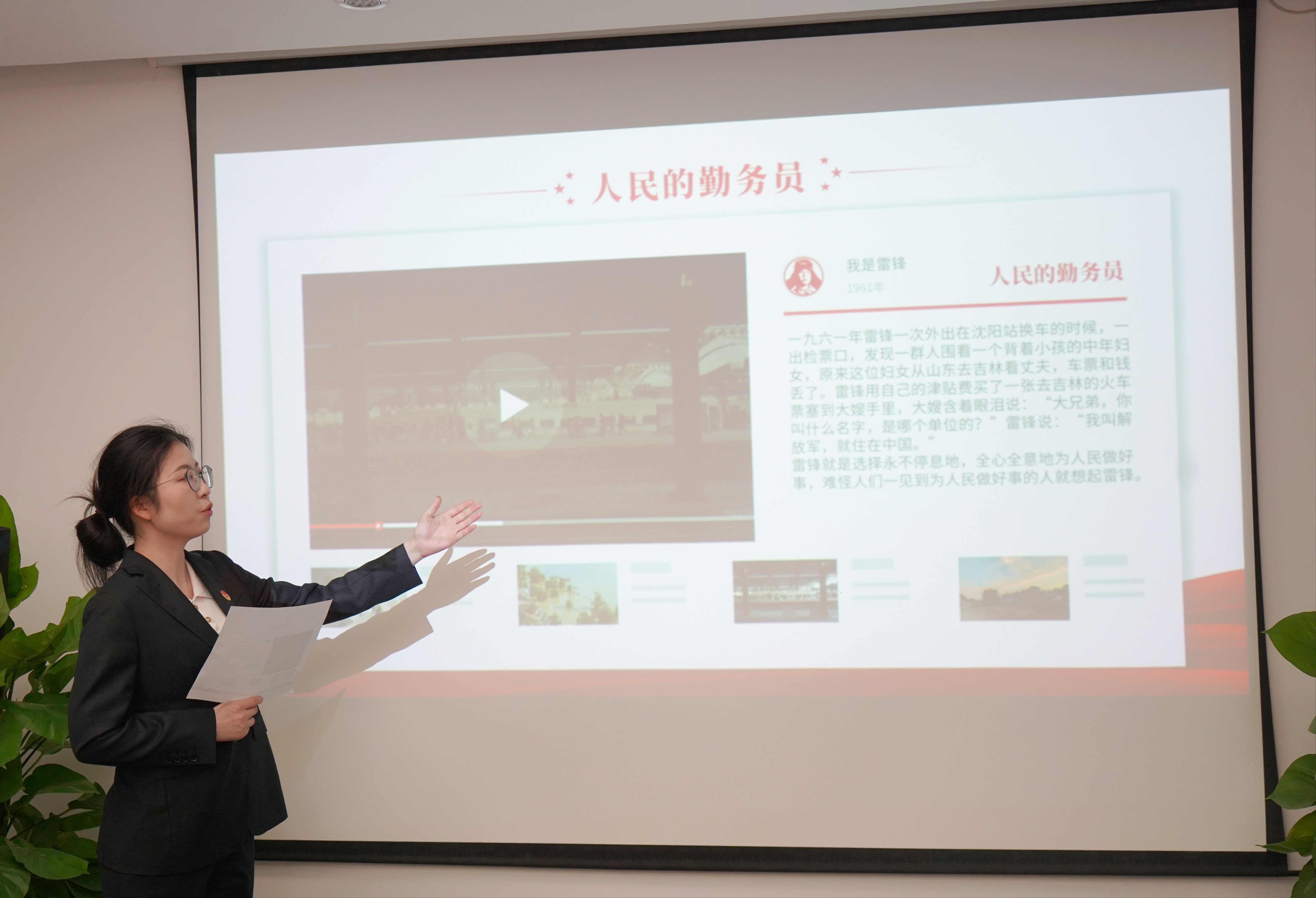 活动中,全体团员通过观看短视频深入学习了雷锋精神及其先进事迹。碳交中心团支部书记李青以《向雷锋同志学习》为主题,深入浅出地讲了一堂主题团课。团支部副书记翟晶晶领学了习近平总书记对深入开展学雷锋活动作出的重要指示精神,并分享学雷锋之名言警句。随后在开展“我讲你听之雷锋小故事”活动中,由黄敏、王月、徐婧三名同志分别讲述了雷锋同志“一次义务劳动”“可敬的傻子”和“人民的勤务员”的动人小故事。