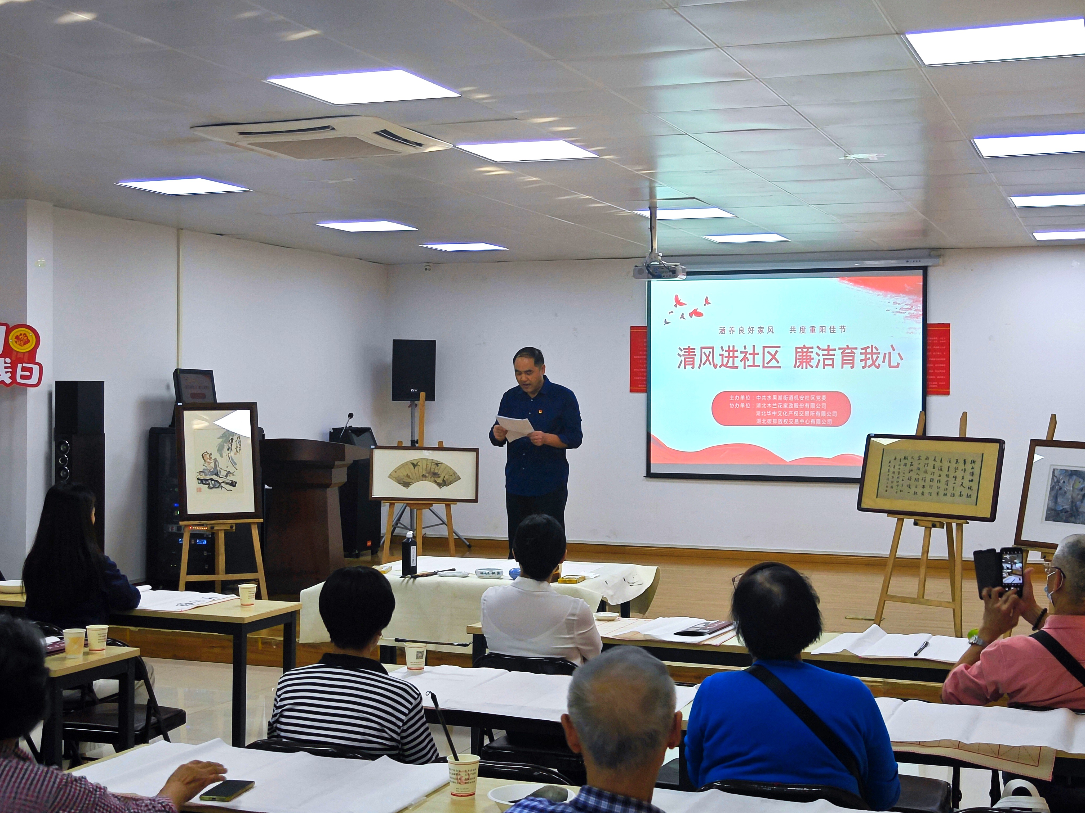 为大力弘扬中华民族尊老、敬老的传统美德,10月18日,华中文交所与湖北碳交中心、机安社区开展“清风进社区 廉洁育我心”重阳节联建活动,营造欢乐祥和的节日氛围,进一步加强精神文明建设,涵养良好家风,共度重阳佳节。
