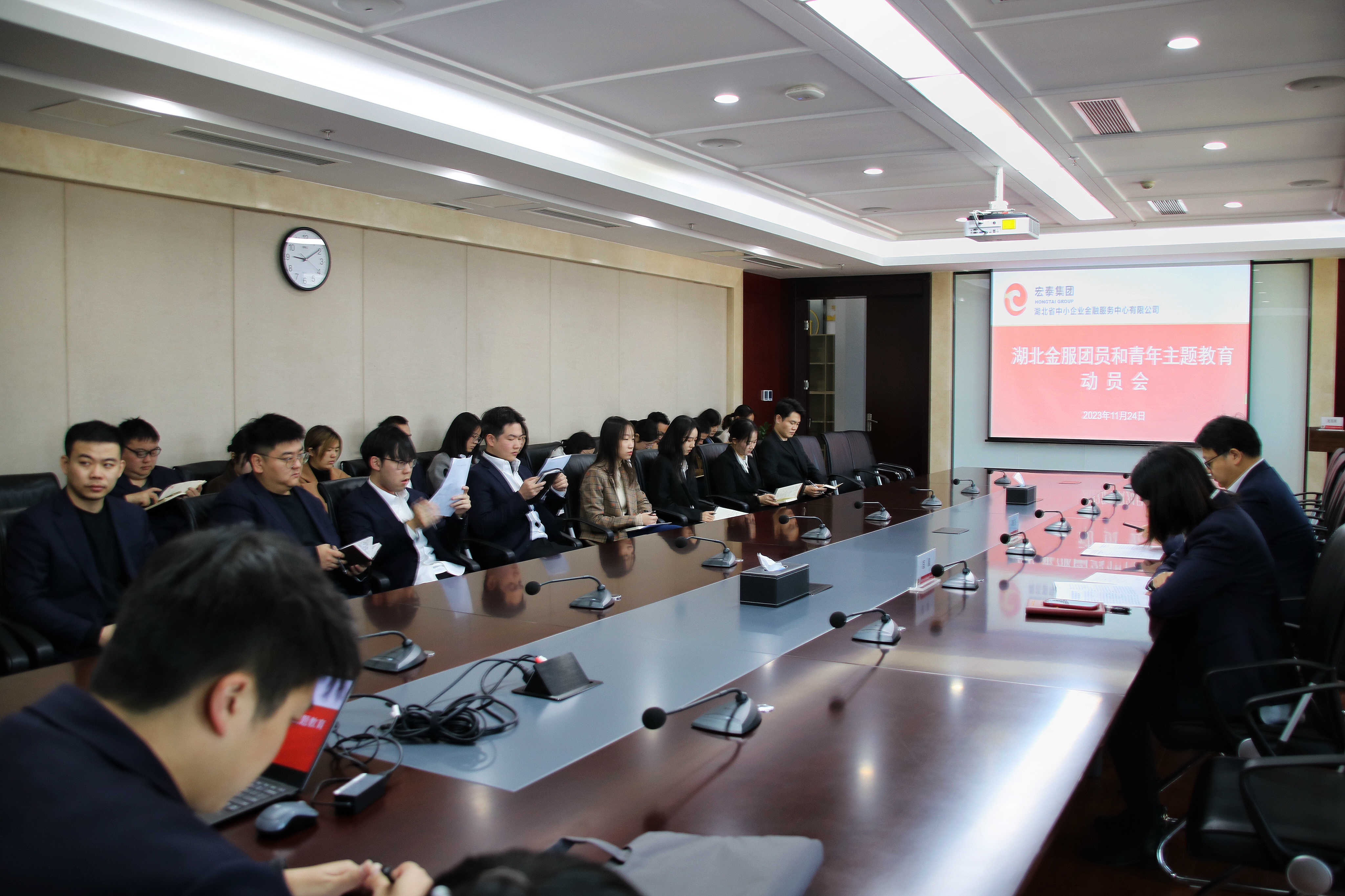 11月24日上午,湖北金服召开团员和青年主题教育动员会,公司党委书记、董事长黄骏飞出席会议并作动员讲话,党委委员、总会计师匡晨主持会议。