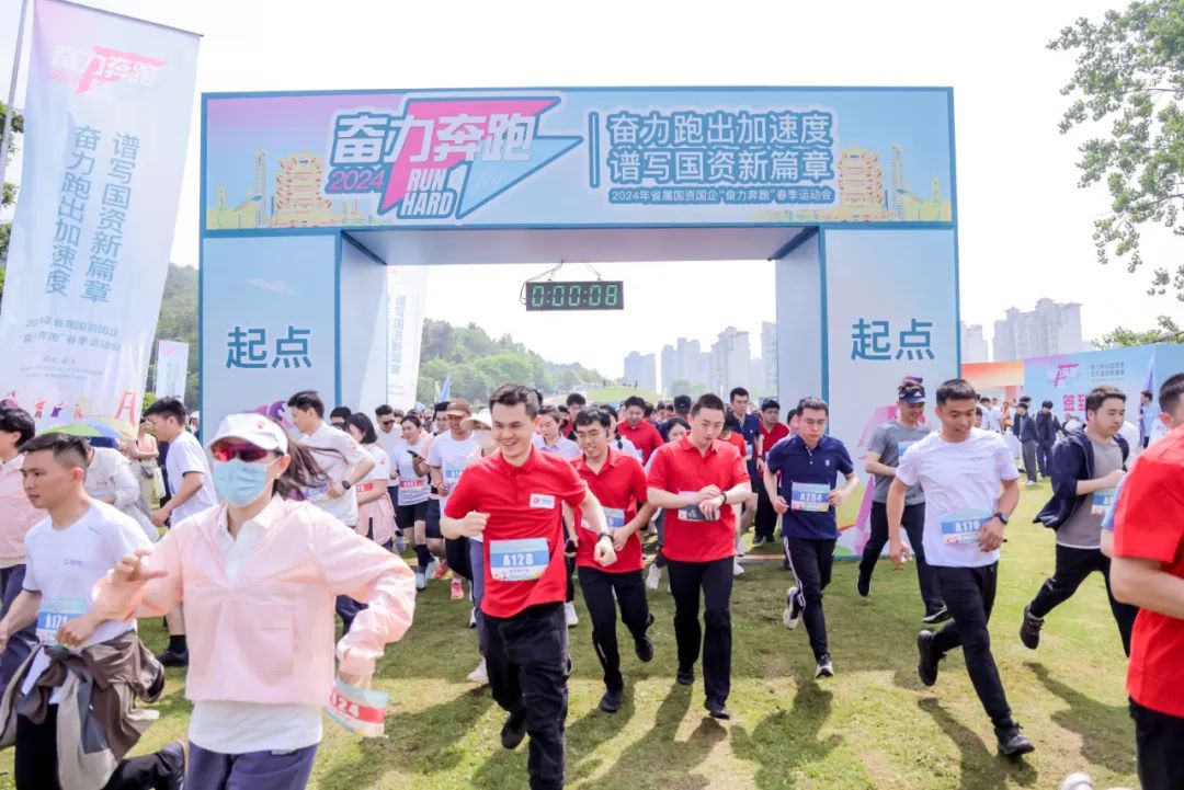 4月20日,2024年省属国资国企“奋力奔跑”春季运动会健康跑活动在常家山国际公园正式落下帷幕。省总工会机关、省政府国资委机关、省属国企共13支队伍参赛。在最后一项赛事健康跑活动中,集团党委书记、董事长曾鑫,集团党委副书记、工会主席曾庆祝到比赛现场为集团参赛运动员加油助威,并带领职工参加五公里健康跑。