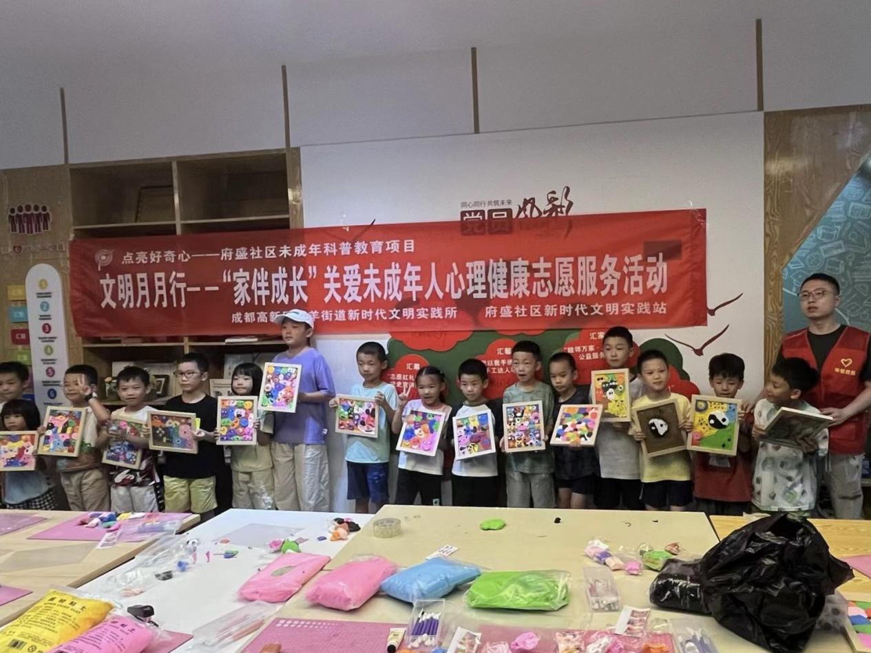8月22日,华塑控股响应社区号召,积极参与未成年人心理健康宣传、教育、关爱帮扶等工作,赴成都市武侯区府盛社区开展“家伴成长”关爱未成年人心理健康志愿服务活动。