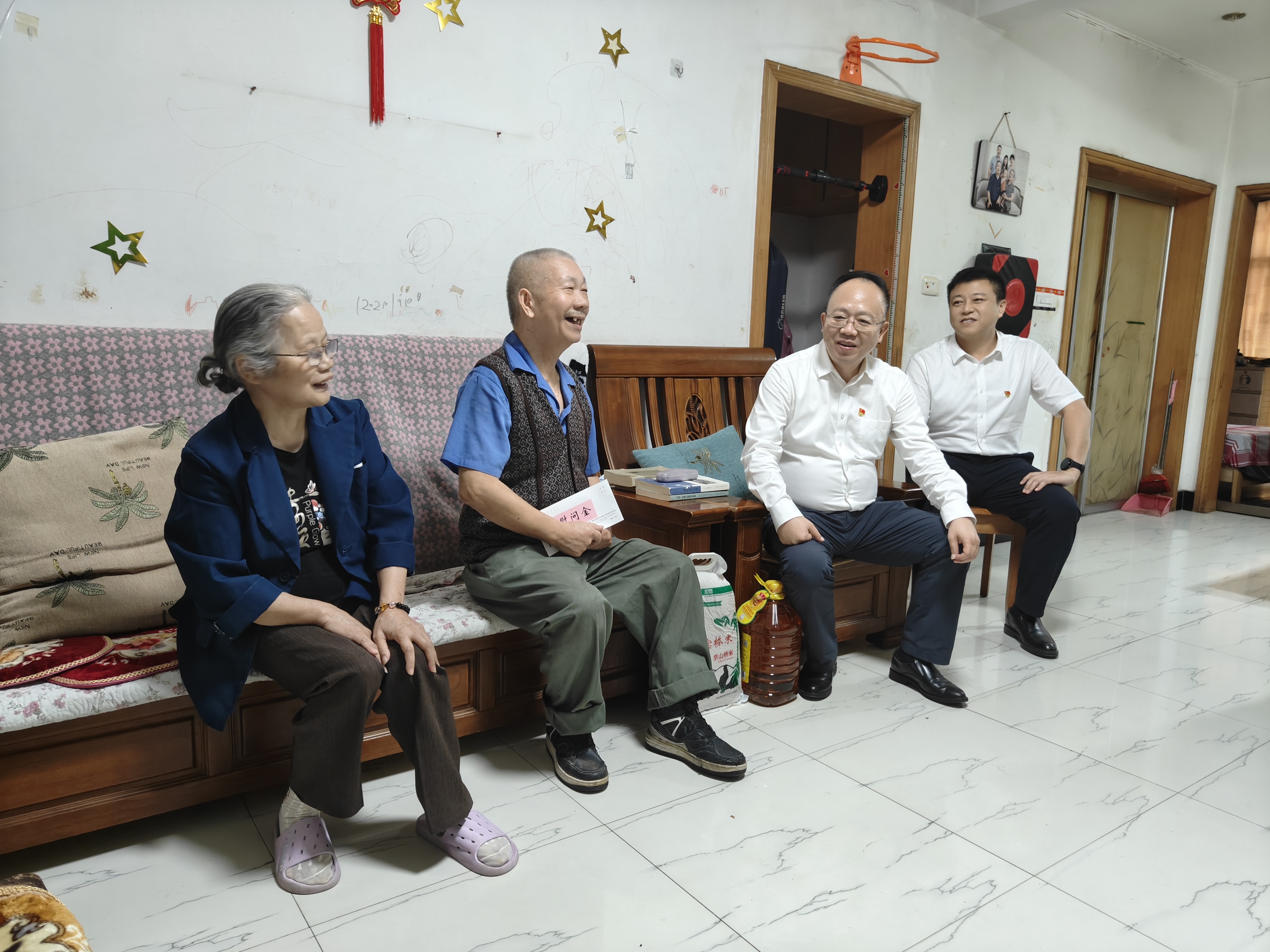 在走访慰问中,何建春带队来到困难党员和群众家中,亲切地与他们拉家常,问冷暖,了解他们的家庭生活情况、身体状况以及实际困难,并送上节日慰问,同时叮嘱他们要好好保重身体,保持积极乐观的心态,安度幸福晚年。