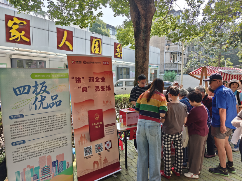5月27日,武汉股交联合下属子公司四板优品参与省电社区端午市集活动,开展了以“‘典’亮生活,优品相伴”为主题的普法宣传。活动通过“趣味答题+礼品赠送”的形式,将《民法典》知识生动有趣地传递到群众身边,为基层法治建设注入了新的活力。活动现场,民法典主题宣传展台前聚集了众多居民,气氛热烈。工作人员通过精心设计的趣味答题环节,向居民普及《民法典》的相关知识内容,并为积极参与答题的居民现场发放《民法典》及精心准备的端午食品和健康营养的美味零食,旨在通过点滴关怀传递法治温暖。 活动结束后,武汉股交党员代表、青年员工等10余人组成志愿服务队,在省电社区开展垃圾清扫志愿服务活动。