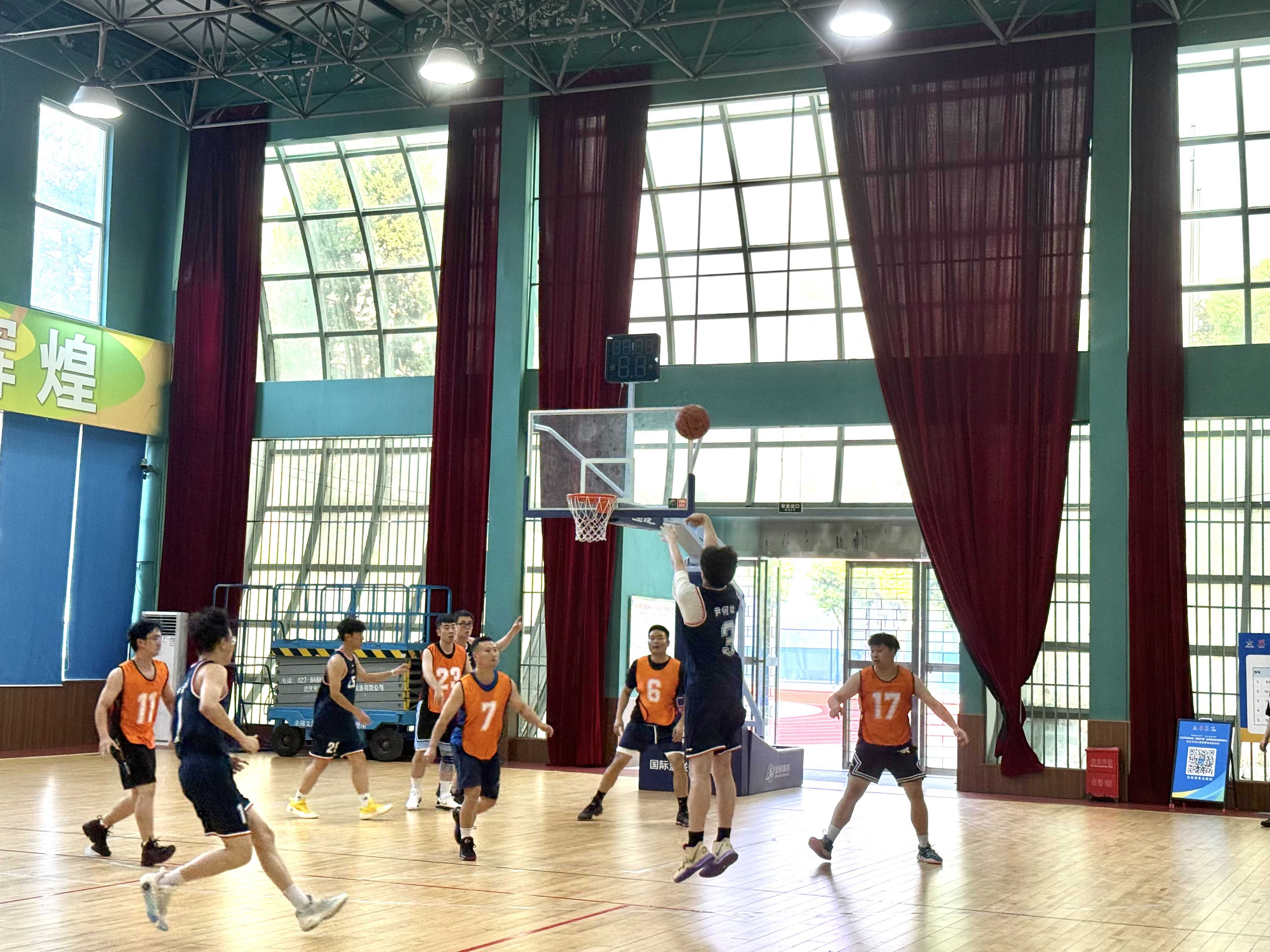 篮球项目赛场上,队员们配合默契,无论是精准传球、迅猛突破还是果断投篮,都展现出扎实的技术功底与顽强的竞技精神。