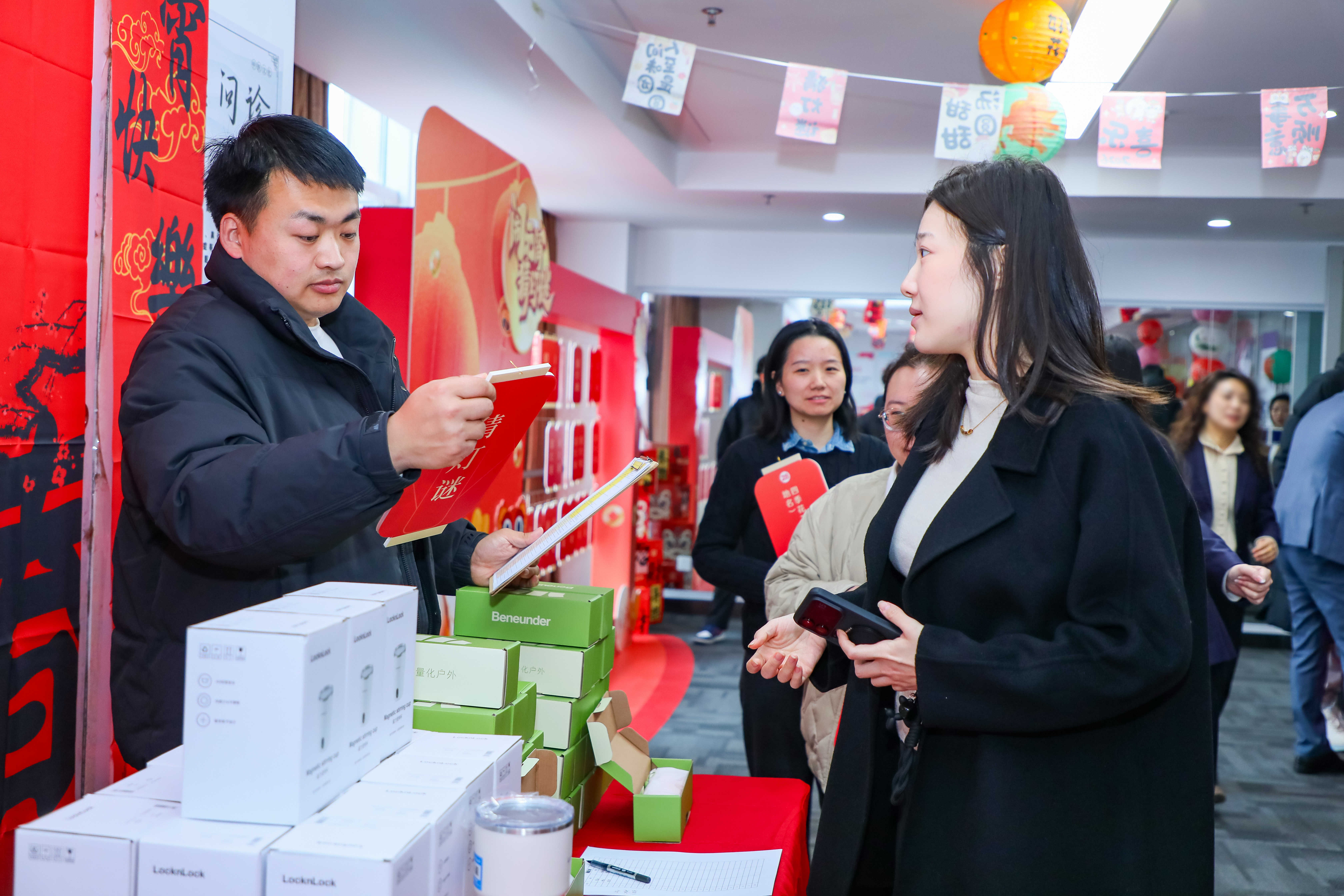 活动现场张灯结彩,彩色灯笼与喜庆春联相映成趣,浓浓的元宵氛围感拉满。猜灯谜、做花灯、品汤圆等经典民俗环节轮番上演,吸引职工们踊跃参与、默契互动,欢声笑语充盈整个现场。猜灯谜环节亮点十足,三十余条谜面紧扣传统文化、米兰官方版网站与金融专业知识,兼具趣味性与专业性。花灯DIY区域人气爆棚,职工们手持马年主题花灯材料,巧手裁剪、细心粘贴、精心点缀,在动手创作中解锁传统民俗乐趣。一盏盏精致灵动的花灯,不仅承载着大家对节日的美好期许,更凝聚着团队的温情与默契。