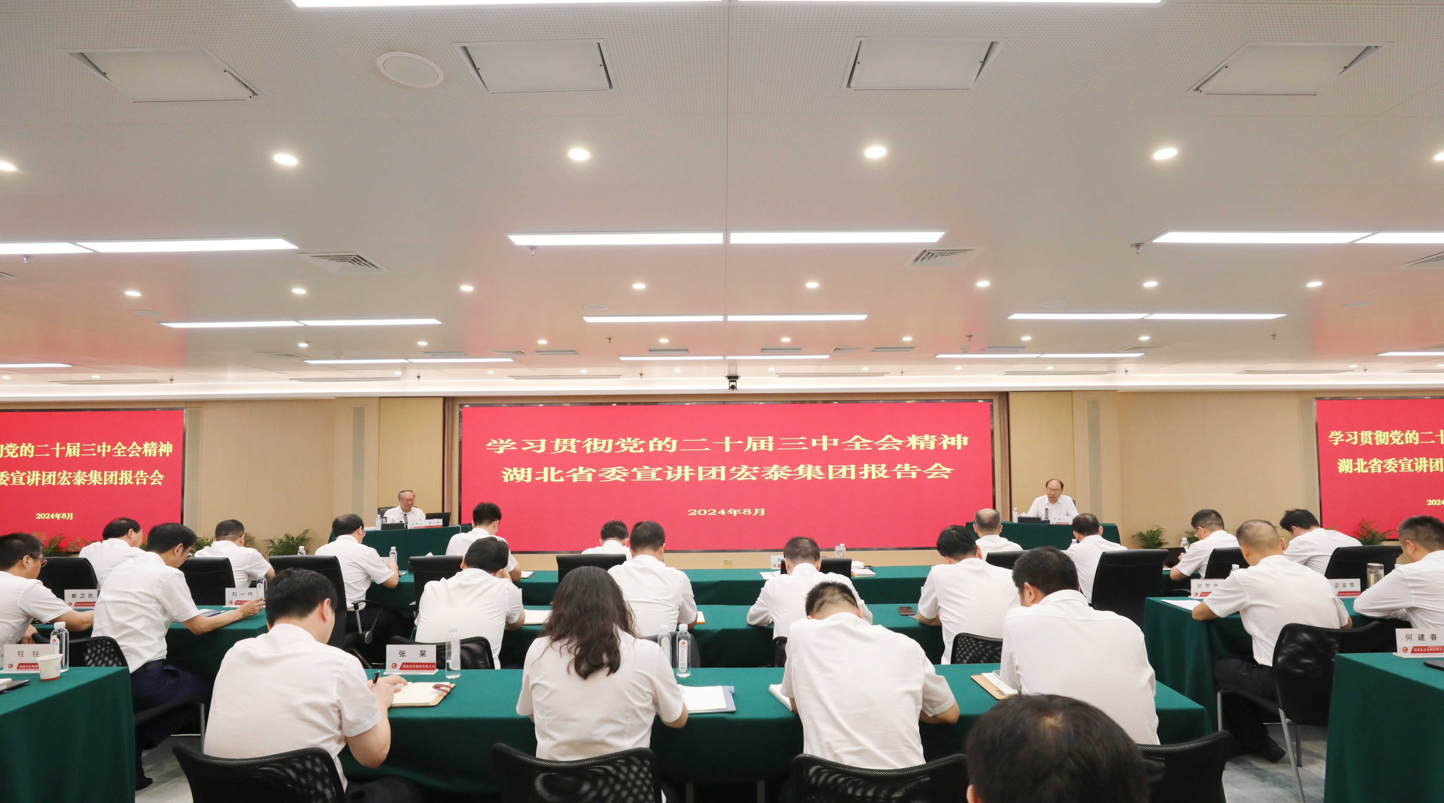 8月13日下午,学习贯彻党的二十届三中全会精神省委宣讲团米兰官方版网站-米兰online(中国) 报告会暨集团党委理论学习中心组集体(扩大)学习会议举行。省委宣讲团成员、湖北大学党委书记谢红星作宣讲报告。集团党委书记、董事长曾鑫主持报告会并讲话。