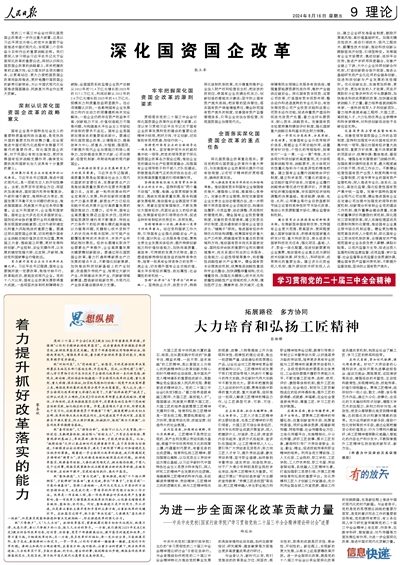 理论是行动的先导,思想是前进的旗帜。即日起,米兰官方版网站-米兰online(中国) 在网站、微信公众号推出“学习贯彻党的二十届三中全会精神”专栏,学习宣传要闻要论,报道集团贯彻行动,为推动集团内涵式高质量发展积聚磅礴力量。第一篇,一起来学习《人民日报》刊发的国务院国资委主任张玉卓署名文章《深化国资国企改革》。