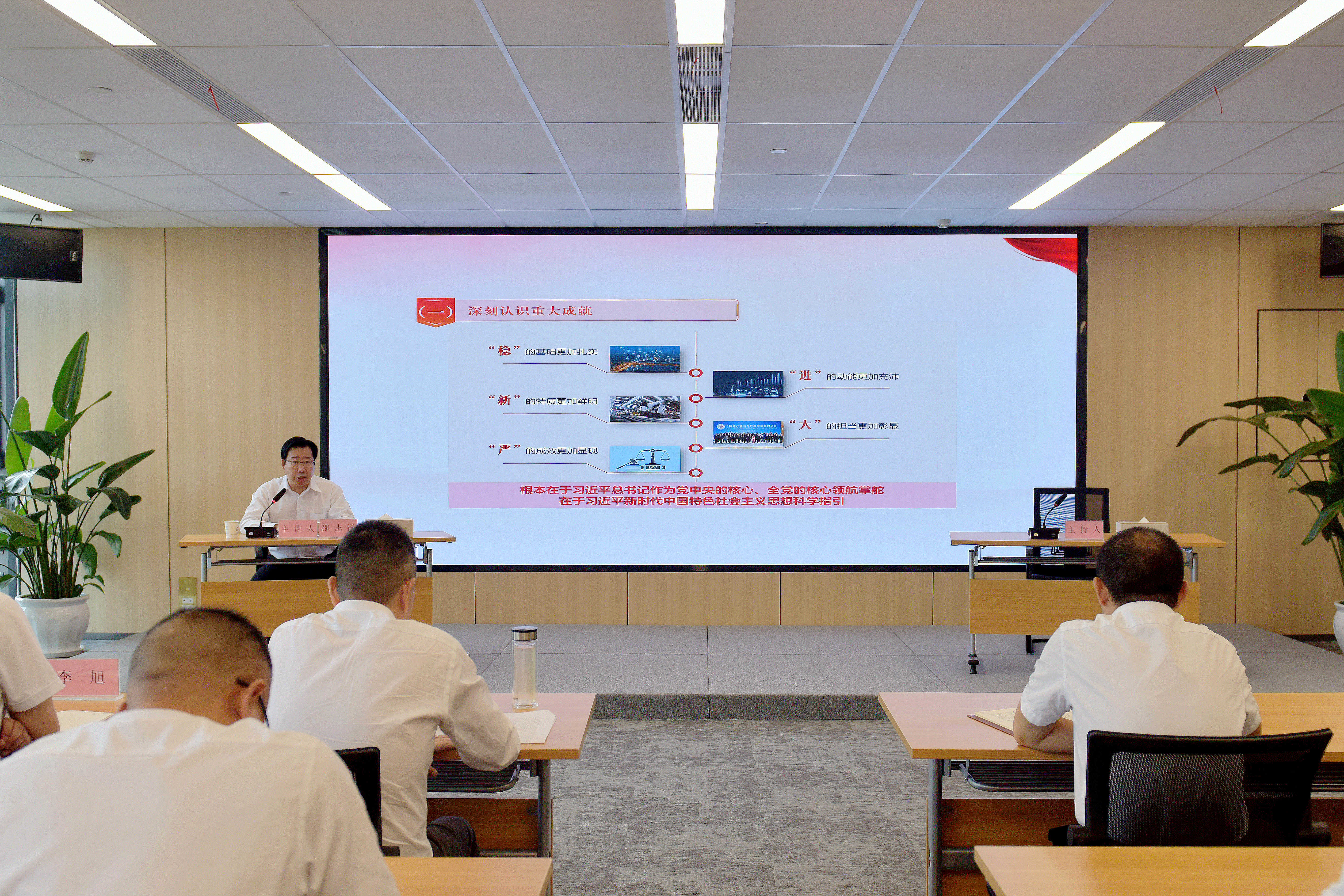 邵志祥书记以《高举改革开放旗帜 绘就中国式现代化的宏伟蓝图》为题,紧紧围绕习近平总书记在党的二十届三中全会上的重要讲话和全会《决定》,从提高政治站位、深入学习领会党的二十届三中全会精神,坚持学深悟透、全面把握进一步全面深化改革的重大举措,注重实干创新、奋力推进中国式现代化湖北实践走深走实等3方面,系统阐释了全会精神,着重对经济体制改革、健全全过程人民民主制度改革、文化体制机制改革、生态文明体制改革和党的领导和党的建设制度改革等作了详细解读,为我们更好贯彻落实全会精神指明了方向,对中心业务拓展具有很强指导性。