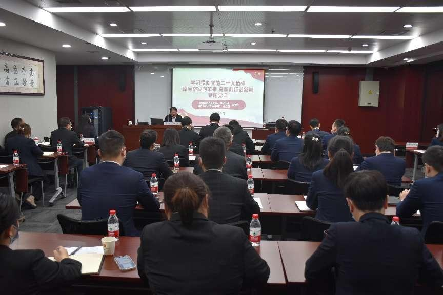 根据党中央、省委部署,集团党委要求,为扎实做好学习贯彻党的二十大精神宣讲工作,引导广大党员干部深刻领会党的二十大精神的重大意义,深刻领悟“两个确立”的决定性意义,增强“四个意识”,坚定“四个自信”,做到“两个维护”,迅速把思想行动统一到党的二十大精神上来。11月15日,集团党委委员、副总经理杨定华赴宏泰融资租赁、宏泰保理公司深入宣讲党的二十大精神。两公司全体党员干部职工参加本次集中宣讲会。