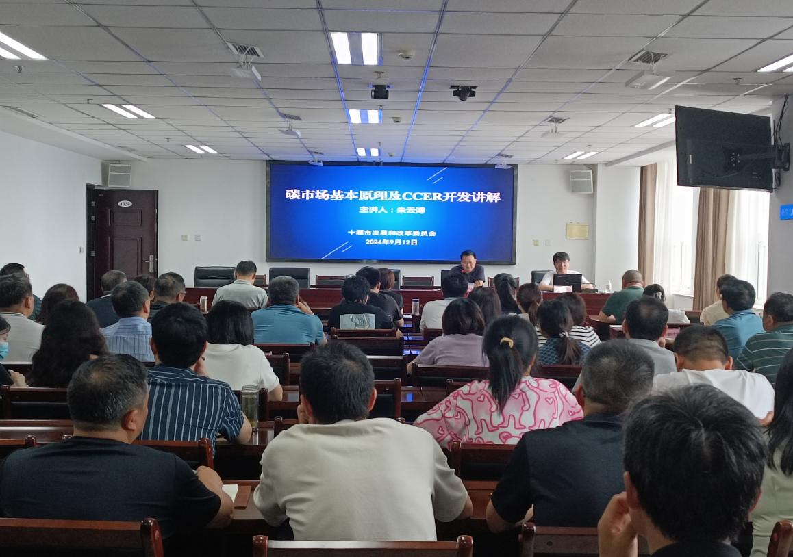 为积极响应国家“双碳”目标、助力绿色低碳发展示范区建设,9月12日,中碳资管受十堰市发改委邀请,为市发改委及各县市区相关部门进行“双碳”专业知识培训。十堰市发改委副主任严勇主持本次培训。