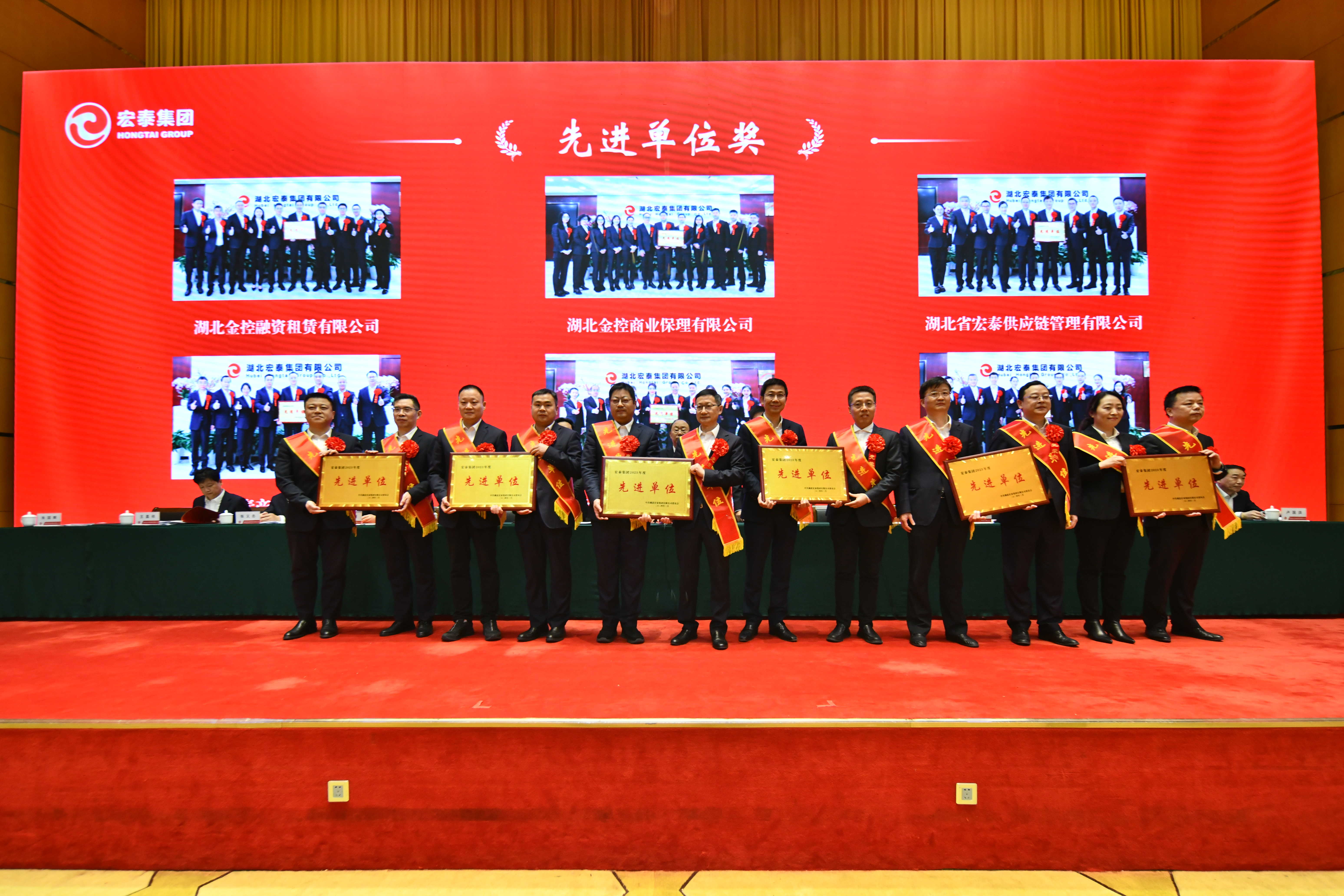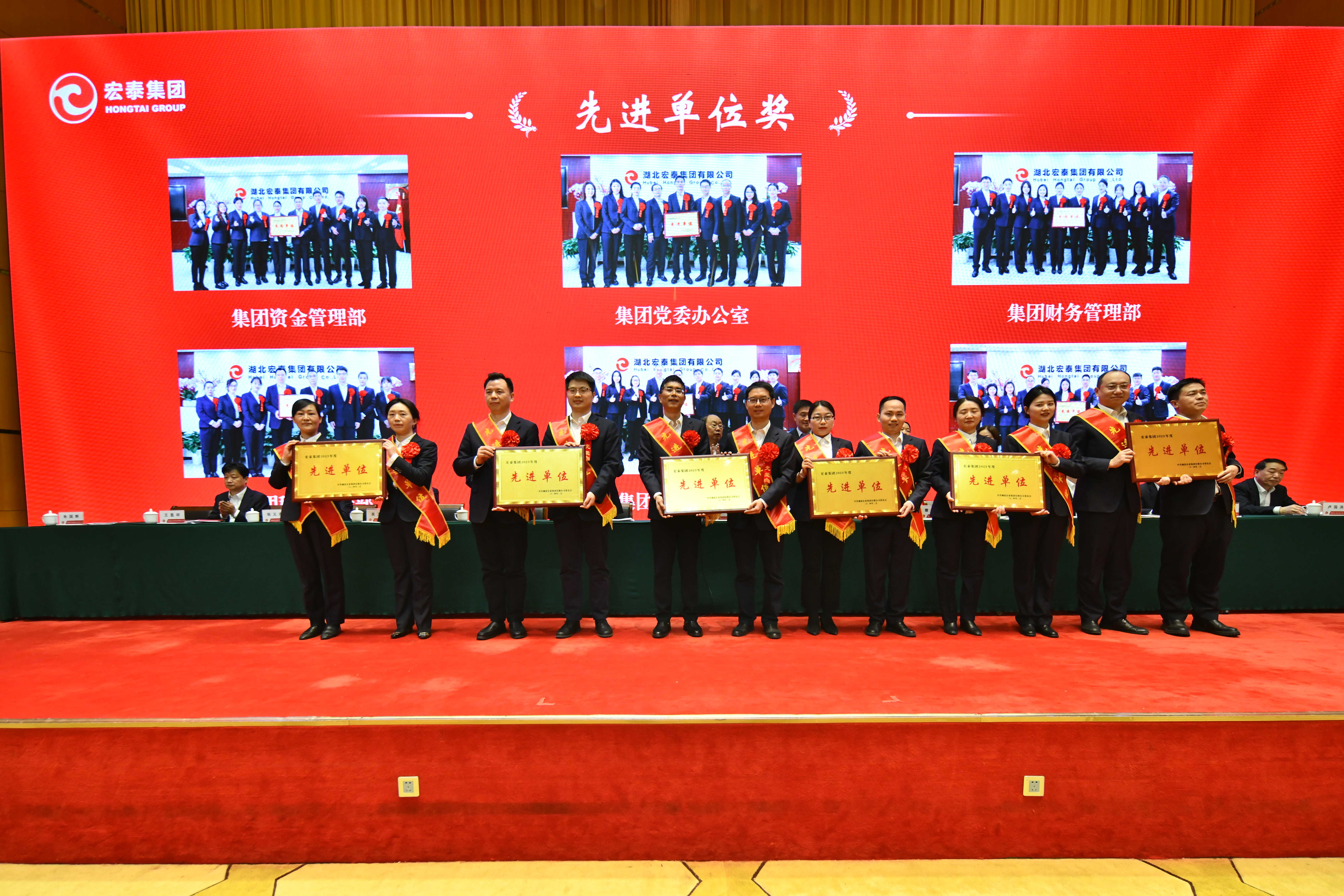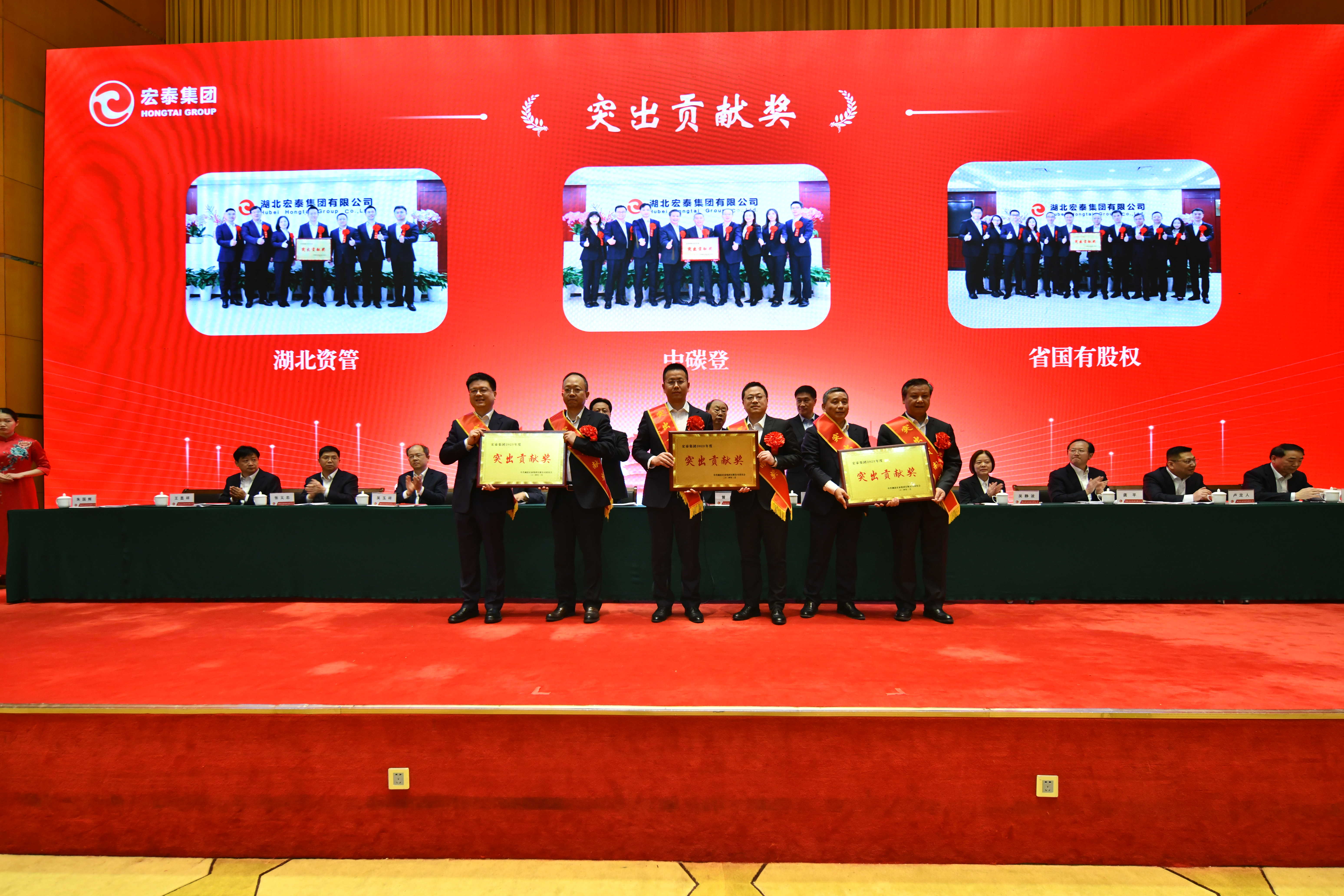 会议宣读了集团党委关于表彰2023年度先进集体和先进个人的决定。3个突出贡献单位、12个先进单位、9个克难攻坚团队、202名企业管理和员工先进个人受到表彰。集团领导曾庆祝、陈江龙、吴静波、吴玉祥和专职外部董事刘志高、集团高管一起为受表彰的先进集体和个人颁发荣誉证书。