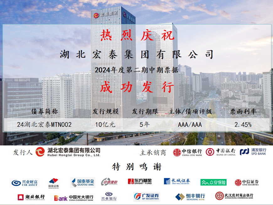 这是集团首次发行5年期中期票据,是集团在融资渠道多元化方面迈出的重要一步。本次发行创下今年以来湖北省同期限、同品种债券最低发行利率,降低了集团整体融资成本,优化了债务期限结构,获得了公开市场的高度认可,体现了投资者对集团发展前景的信心,也为集团长久期债券发行奠定良好基础,为集团高质量发展提供有力的资金保障。