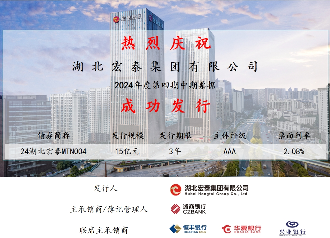 近日,集团2024年第四期中期票据成功发行,标志着集团2024年债券发行工作圆满收官,全年累计发行债券80亿元,其中中票4只、超短融2只,新发债券的平均利率为2.28% ,较上年融资动能持续增强。