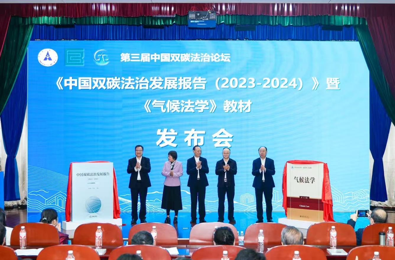 两项双碳法治研究成果在主论坛发布,标志着中国自主的气候法学知识体系迈出更大步伐。《中国双碳法治发展报告(2023-2024)》,对中国双碳法治建设的成就与经验进行了系统展示。《气候法学》教材作为国内首部气候法学教材,填补了我国在该领域的空缺。此外,中国双碳法治数据库启动,让“双碳”法治研究能在坚实的数据基础上蓬勃发展,目前该数据库已经上传了超千条数据。