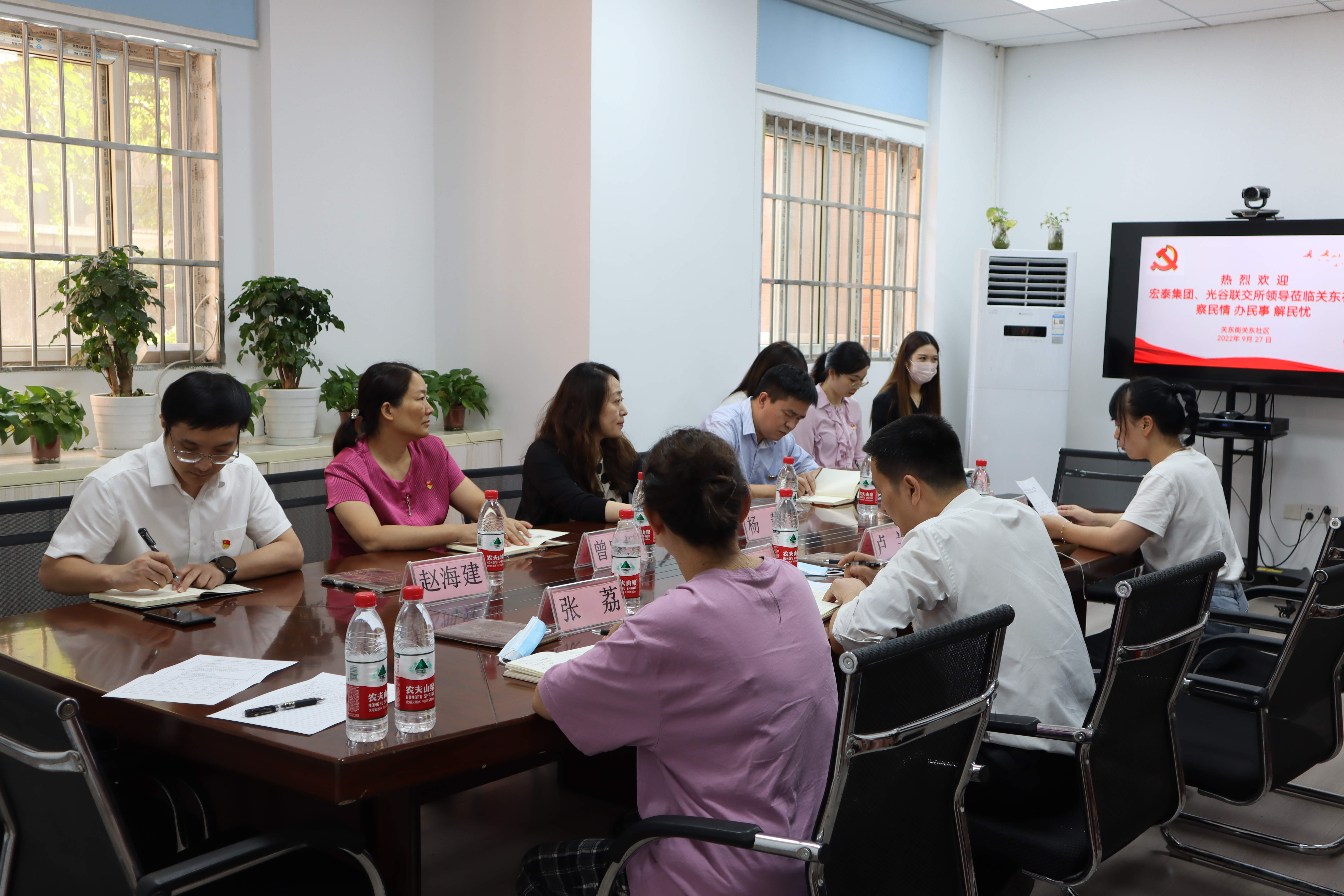 会上,全体党员重温入党誓言,并与关东社区围绕“共谋、共建、共管、共评、共享”主题开展座谈。关东街道党工委副书记、办事处主任王翱翔和关东社区党委书记卢兰对宏泰集团党委和光谷联交所的支持表示感谢,并详细介绍了光谷联交所援建项目的进程以及后续的项目安排。