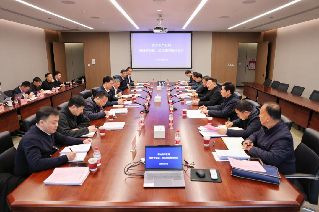 省知识产权局党组成员、副局长梁绍斌及相关处室负责同志参加调研座谈。省征信公司、武汉光谷联交所、武汉股权托管交易中心、武汉知识产权交易所汇报了数据征信服务和供应链平台建设、知识产权证券化创新实践、科技成果转移转化及股权托管等方面工作情况。
