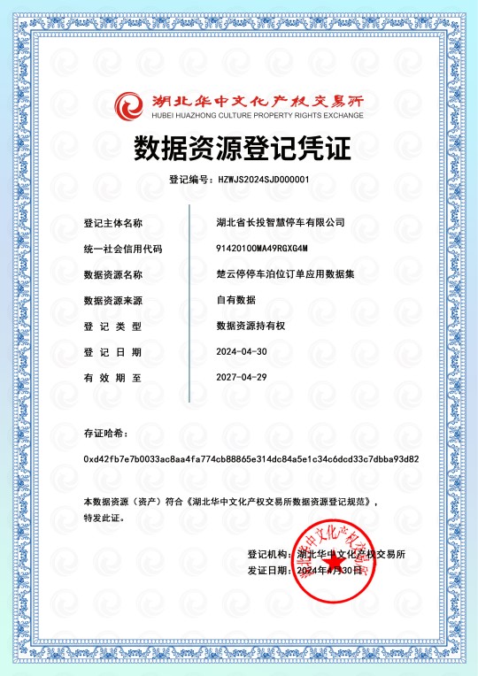 此次登记确权并获得融资授信的数据资产,是长投智慧停车公司针对商圈、文旅景区停车等难点和痛点,通过“楚云停停车泊位订单应用数据集”产品实时收集、分析和存储47停车场区域3600个停车泊位数据,可帮助城市级停车场管理者掌握停车场的业务状况、车位周转情况等助力其高效运营;对商圈、文旅景区等停车需求,进行实时调度,助力导航平台开辟精准的寻找车位服务。4月30日,华中文交所为该数据资产进行了登记确权,估值高达1090万元。