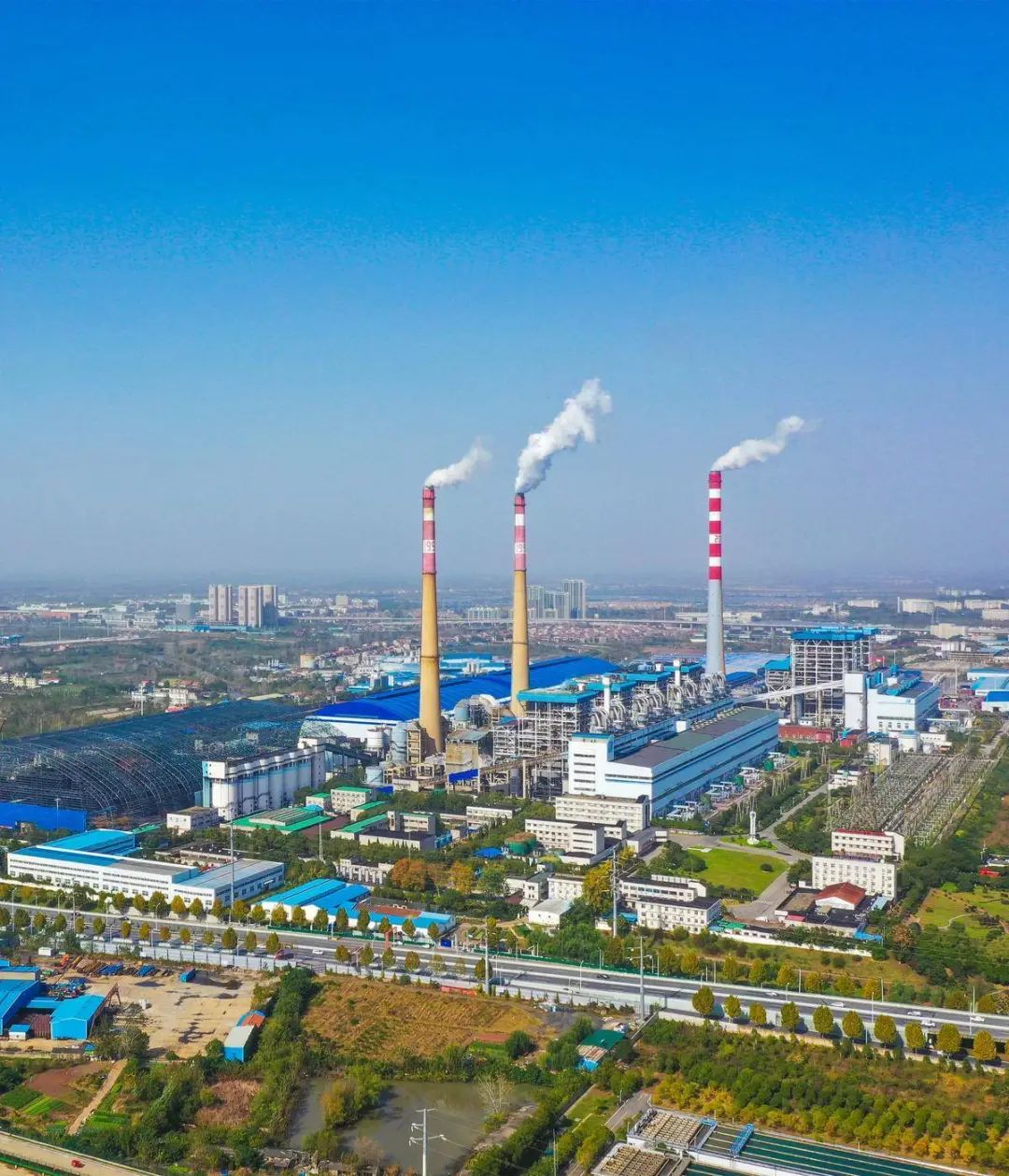远眺生产中的华能阳逻电厂。(湖北日报全媒记者田悦 摄)
