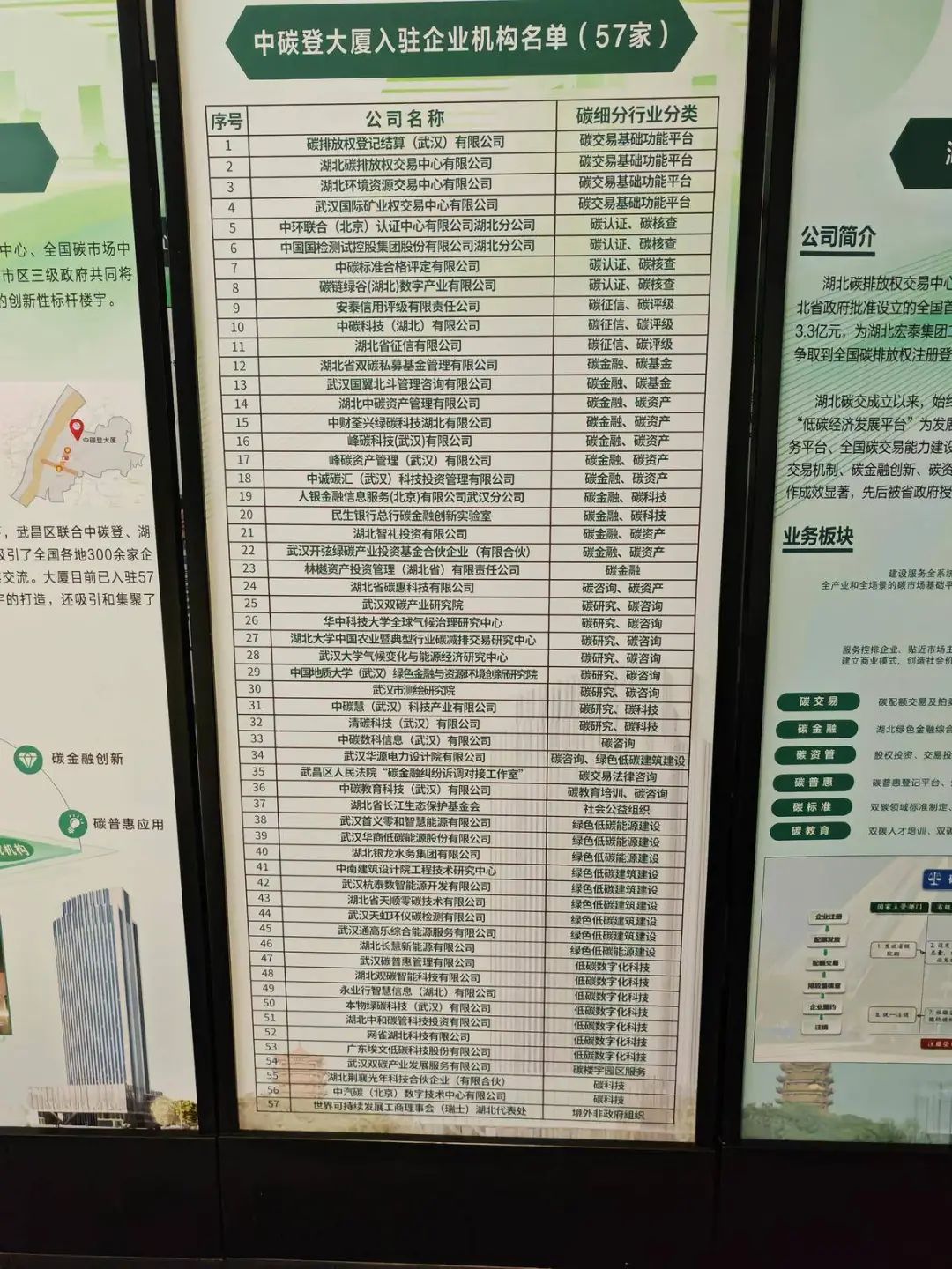 中碳登大厦入驻的57家企业名称。(湖北日报全媒记者 左晨 摄)