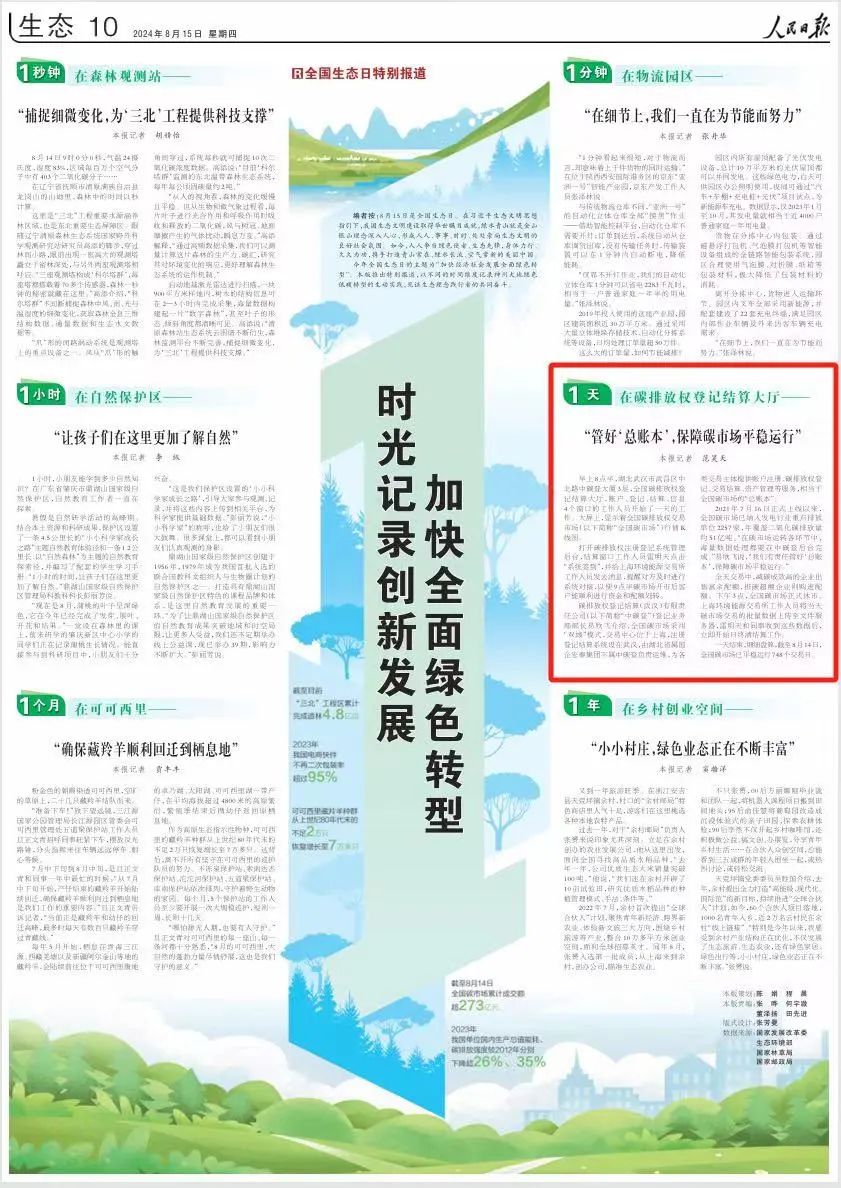 8月15日是全国生态日。今年全国生态日的主题为“加快经济社会发展全面绿色转型”。《人民日报》推出特别报道,以不同的时间维度记录神州大地绿色低碳转型的生动实践,见证生态理念践行者的共同奋斗。其中,实地采访报道了“中碳登的一天”。