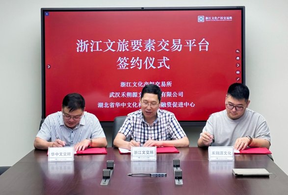 6月17日,浙江文旅要素交易平台签约仪式在浙江文化大厦举行。华中文交所旗下湖北省文化和旅游投融资促进中心与浙江文化产权交易所及武汉禾朔源文化科技有限公司签署战略合作协议,携手打造浙江文旅要素交易平台,助力浙江乃至长三角地区文化旅游产业高质量发展。