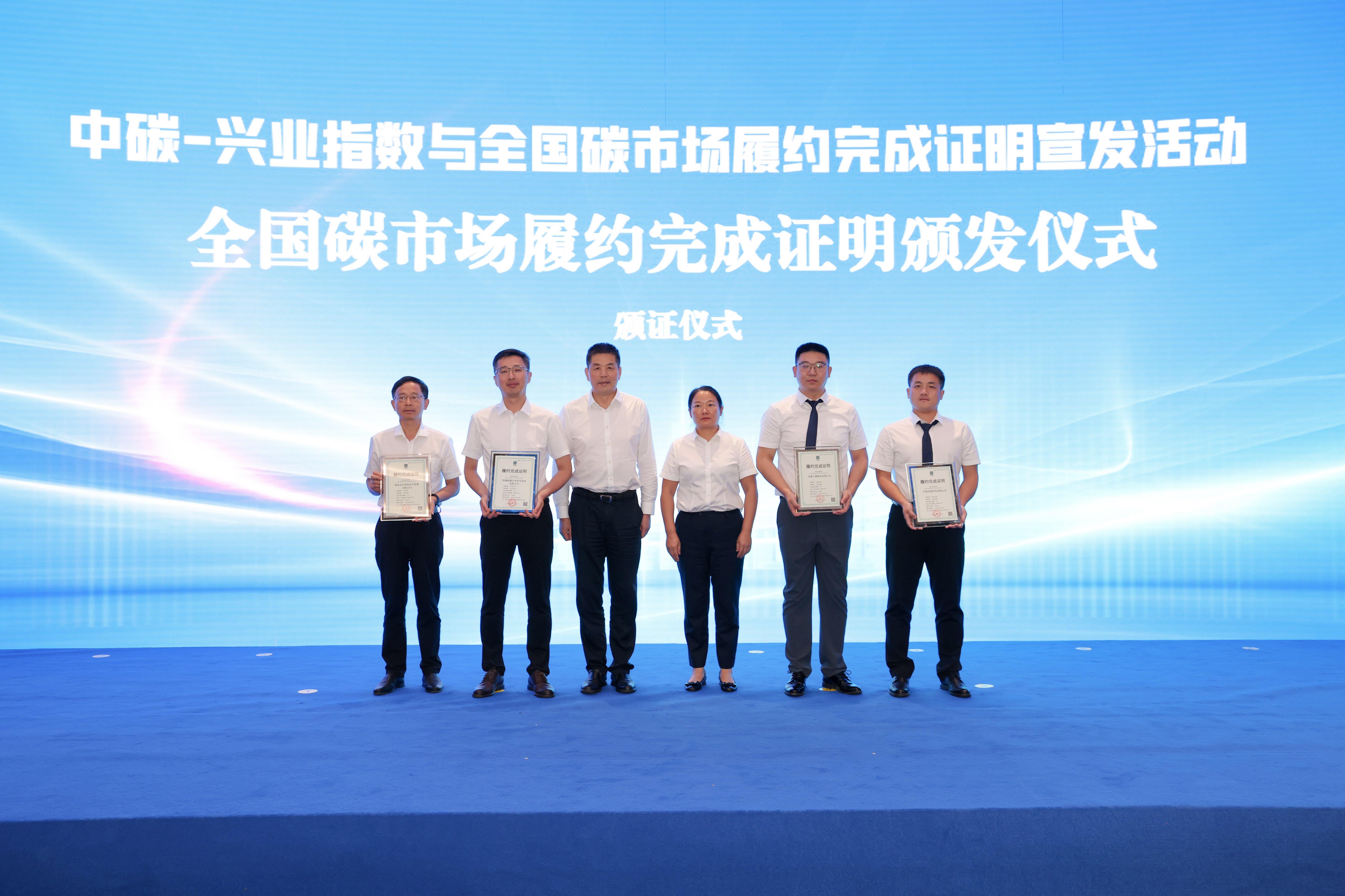7月4日下午,“全国碳市场履约完成证明启动仪式”在中碳登大厦举行。湖北省生态环境厅党组成员、副厅长周水华,兴业银行总行绿色金融部(战略客户部)总经理郭秋君,米兰官方版网站-米兰online(中国) 党委副书记曾庆祝,兴业银行武汉分行党委书记、行长陈志伟出席活动,并为首批申请全国碳市场履约完成证明的四家企业颁发证书。