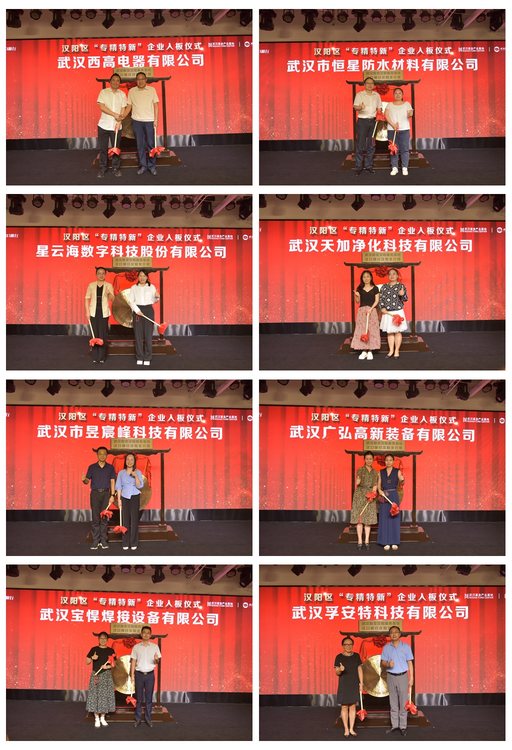 入板仪式上,武汉西高电器有限公司等8家专精特新企业分别鸣锣入板,开启上市新征程。