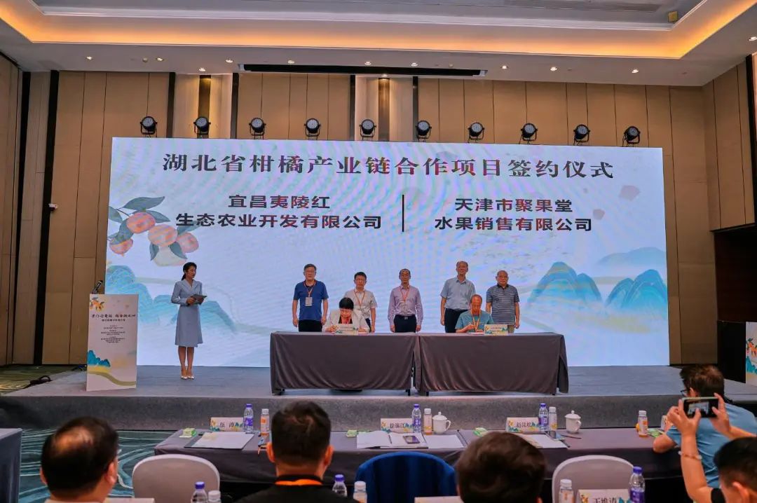 宜昌夷陵红生态农业开发有限公司与天津市聚果堂水果销售有限公司、翠林农牧集团宜昌有限公司与天津市金农人商贸有限公司分别就宜昌蜜桔供销合作项目、NFC果汁采购项目举行了现场签约,签约总金额达2.4亿元。