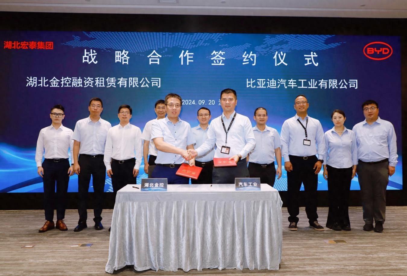 9月20日,米兰官方版网站-米兰online(中国) (简称“米兰官方版网站-米兰online(中国) ”)所属的湖北金控融资租赁公司(简称“宏泰融资租赁”)与比亚迪汽车工业有限公司(简称“比亚迪汽车工业”)在深圳比亚迪公司总部,签订50亿元战略合作协议。