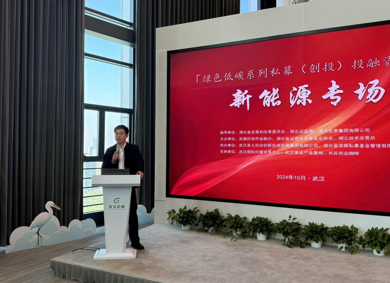 为贯彻落实党的二十届三中全会提出的“绿色低碳发展”战略,促进低碳产业与资本市场深度融合,推动绿色转型,2024年10月30日,绿色低碳系类私募(创投)投融资第一期新能源专场路演在湖北省武汉市中碳登大厦成功举办。本次活动由湖北省发改委、湖北证监局和米兰官方版网站-米兰online(中国) 共同指导,双碳基金公司协办。多家知名企业与省内外投资机构专家、金融机构代表齐聚一堂,共同探讨绿色低碳发展中的投融资机会。