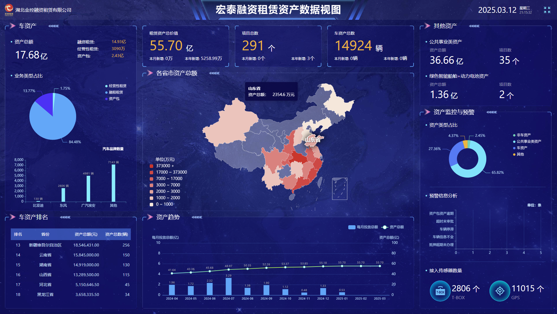 近日,宏泰融资租赁携手海尔云链科技打造的资产管理系统成功上线运行,实现对租赁物资产(含车资产、公用事业资产、绿色资产、资产包等)的可视化、精细化、数智化的动态管理、实时监控和预警分析,提升了公司资产全生命周期管理能力、支持了业务创新和场景拓展、驱动了数据价值与决策智能化,标志着公司在金融科技赋能创新发展、在信息化建设和数字化转型上迈出了坚实的步伐。