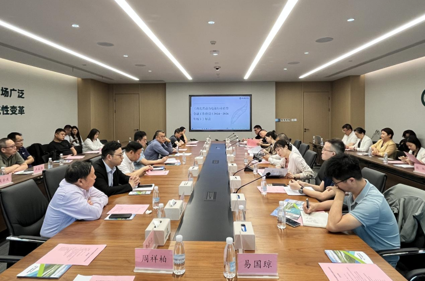 会上,湖北碳交中心绿色金融部副经理李翬围绕《湖北省动力电池行业转型金融工作指引(2024—2026 年版)》进行了深度解读,并详细介绍了鄂绿通平台绿色企业(项目)评价服务。