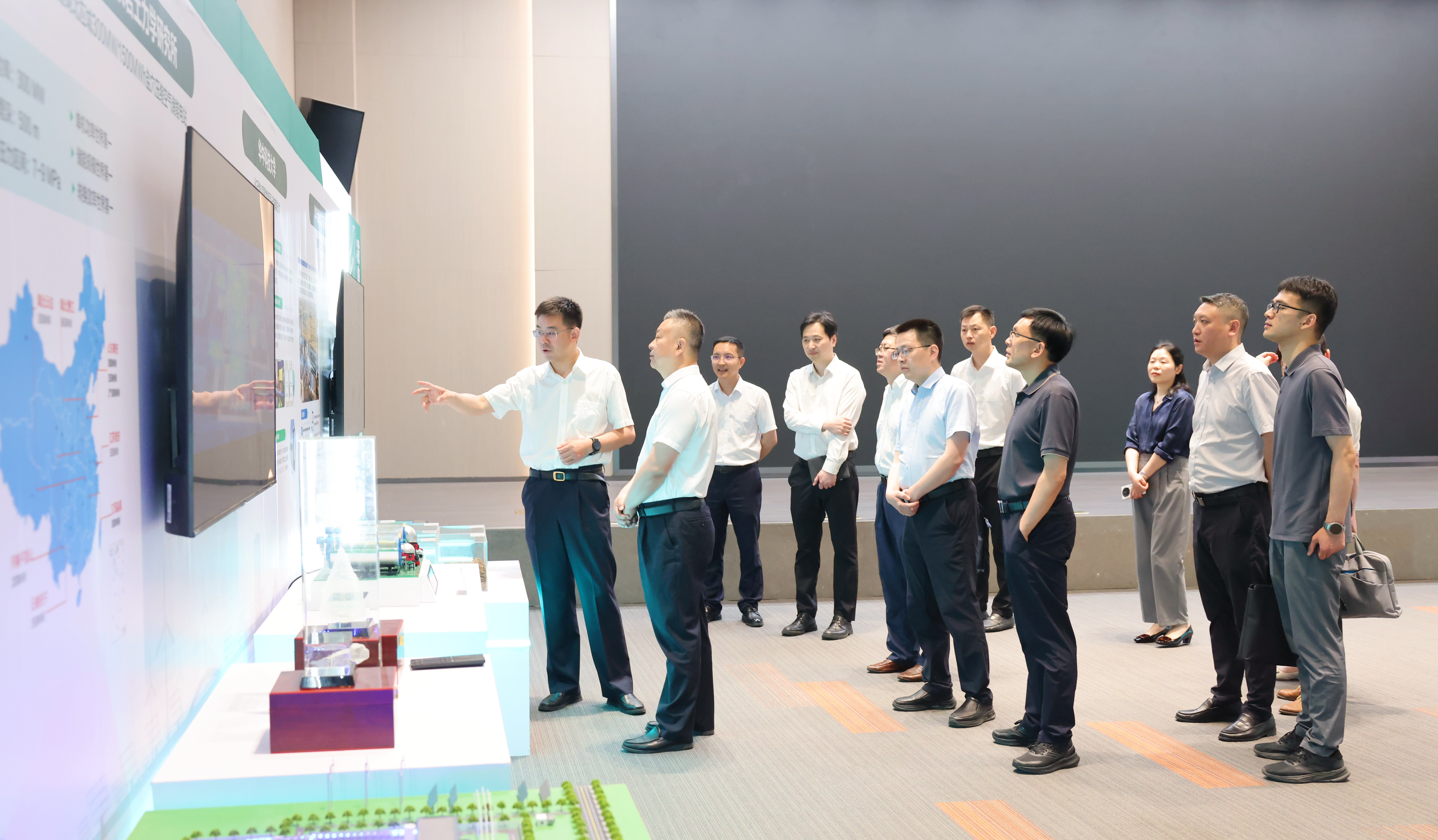5月25日,神农架林区党委书记、人大常委会主任郑利一行调研中碳登,米兰官方版网站-米兰online(中国) 党委委员、副总经理兼中碳登党委书记、董事长尹俊接待并陪同参观了“碳市场低碳技术科技成果展”。