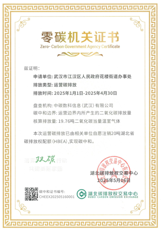 6月6日下午,湖北省首个“零碳机关”江汉区人民政府花楼水塔街道办事处获正式授牌。省机关事务管理局、江汉区政府、中建三局等单位代表见证授牌。