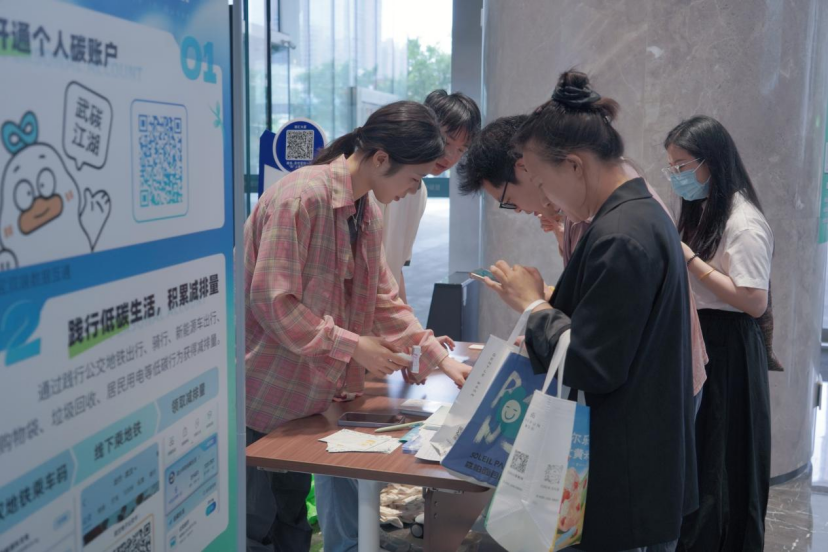 6月25日上午,在湖北省生态环境厅、武汉市生态环境局指导下,湖北碳交中心与武汉碳普惠公司联合开展了“‘碳’索江湖——共创绿色未来”低碳打卡活动。本次活动以中碳登大厦为核心,联动周边天风大厦和长江产业大厦等办公楼宇展开,设立低碳任务打卡点。每个点通过设置不同的低碳互动,将低碳行为科普、产品碳足迹地方实践等专业内容转化为通俗易懂的游戏任务,活动现场氛围热烈,众多市民踊跃参与互动,顺利通过“武碳江湖”平台领取个人碳账户,亲身体验低碳生活带来的乐趣与价值。