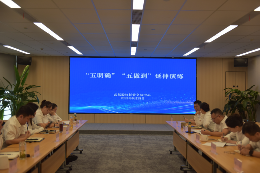 9月28日下午,武汉股交成功举办第三期“五明确”“五做到”延伸演练活动。党委书记、董事长肖忠云主持演练并作总结讲话,中心各部门及子公司全员参与,进一步推动能力建设向纵深发展。