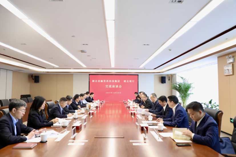 10月28日上午,省再担保集团党委书记、董事长何建春带队赴湖北银行,与湖北银行党委书记、董事长赵红兵开展工作座谈。双方围绕深化政银担合作、推动产品创新进行了深入交流,并就提升合作效能、拓展服务领域达成共识。湖北银行党委委员、副行长万立松;省科担公司党支部副书记、总经理王波;省再担保集团党委委员、总会计师黄志明,党委委员、副总经理梅凌峰,党委委员、副总经理陈梁参与座谈。
