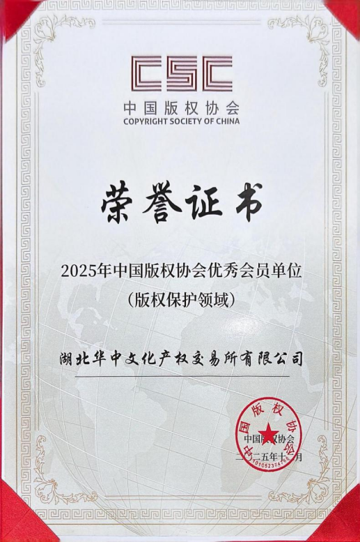 近年来,在湖北省委宣传部、省版权局的重视与指导下,华中文交所积极探索线上线下相结合的版权综合服务的新技术、新手段、新模式,不断向区块链+版权、版权保护等领域接续发力。2022年以来,华中文交所先后获得“国家版权示范单位”“中国版权创新力企业”等称号,相关经验做法入选国家版权局第一批版权强国建设典型案例。2025年1月,华中文交所获批设立湖北省作品版权服务中心。此次获奖,是华中文交所在版权保护领域深耕不辍的阶段性成果,标志着其在版权领域的创新实践与综合服务能力持续获得行业高度认可。
