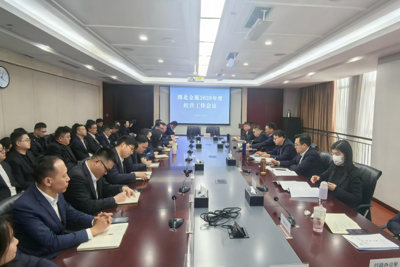 为全面部署 2026 年度经营目标与重点任务,激励全体员工以昂扬斗志开局起步,1月13日,湖北金服召开2026年度经营工作会议,系统总结公司2025年改革发展成效,统筹谋划2026年全年经营工作,并就奋力冲刺一季度“开门红”作全员动员部署。公司党委书记、董事长黄骏飞出席会议并讲话。