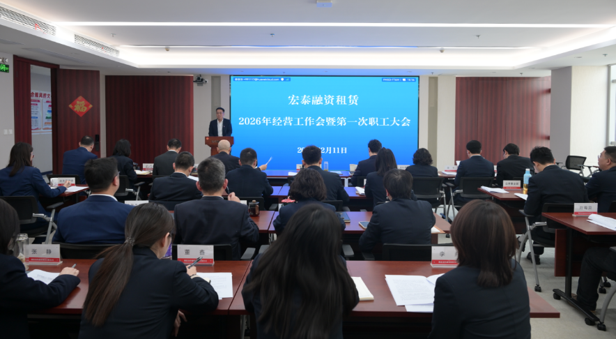 为全面贯彻落实集团经营工作会议精神,2月11日,宏泰融资租赁召开2026年经营工作会暨第一次职工大会。会议旨在全面总结回顾2025年及“十四五”时期工作,分析当前形势,部署2026年及未来五年重点任务,动员全体干部职工统一思想、凝聚共识,奋力书写公司高质量发展新篇章。公司党委书记、董事长崔卫民出席会议并讲话,党委副书记、总经理徐元彬作经营工作报告,党委委员、纪委书记郭佳作节前廉洁提醒。